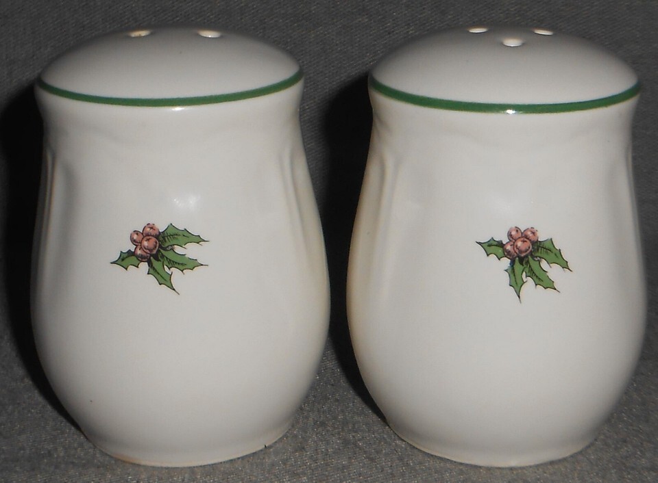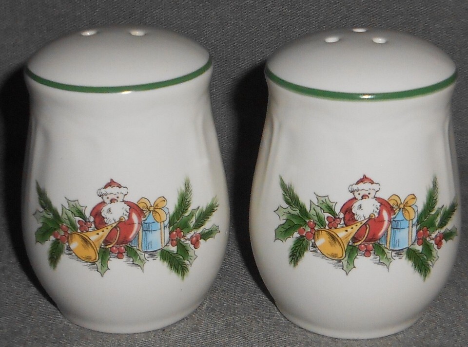 1992 Macys - The Cellar YULETIDE PATTERN Salt and Pepper Set MADE IN JAPAN