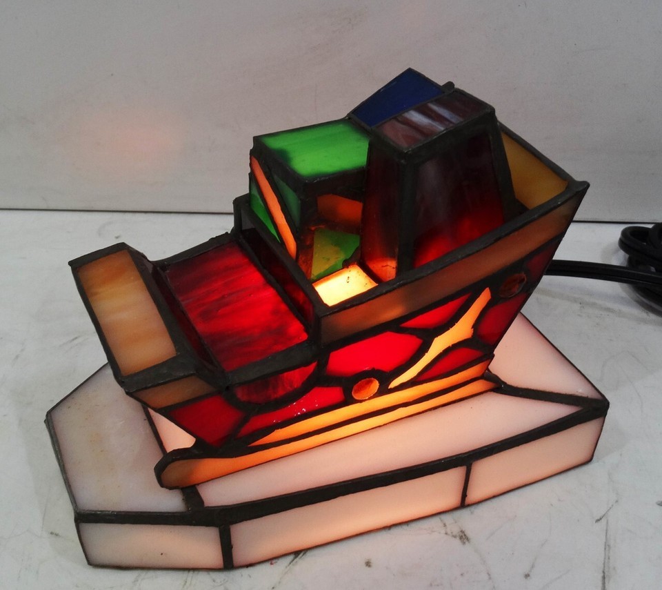 This festive holiday Sleigh with Presents accent lamp, crafted of Holiday Red and Green stained art glass with Winter White, Amber and jewel accents will put you in the spirit of the season.