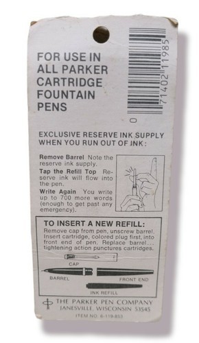 Parker PERMANENT BLACK Super Quink Ink Cartridge Refill - vintage nos