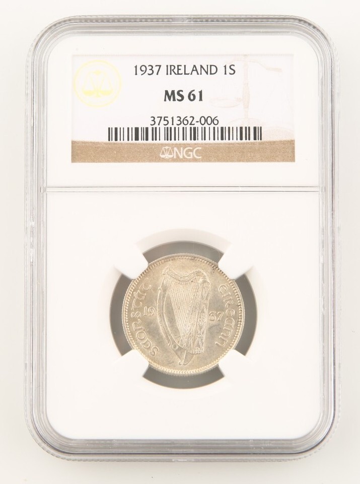 Slabbed by NGC with the title "1937 IRELAND 1S"
