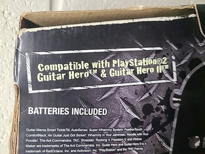 The Shredder Wireless Guitar Controller by The Ant Commandos is a brand new box containing a wireless guitar controller designed for the Sony PlayStation 2 platform. This controller, named "Guitar Mania," is compatible with other controllers and offers a unique gaming experience for music and rhythm games. With its wireless connectivity, players can enjoy a hands-free gaming experience while rocking out to their favorite tunes in virtual reality. This innovative controller is perfect for guitar enthusiasts looking to enhance their gaming experience with a realistic and immersive musical interface.