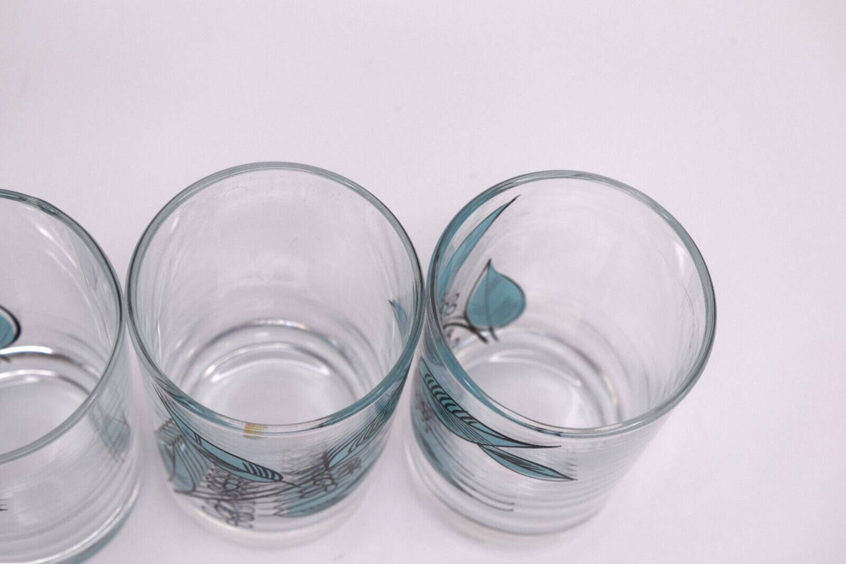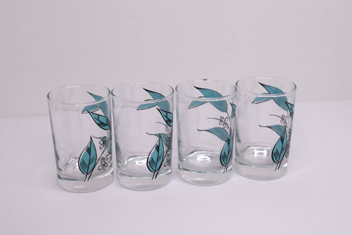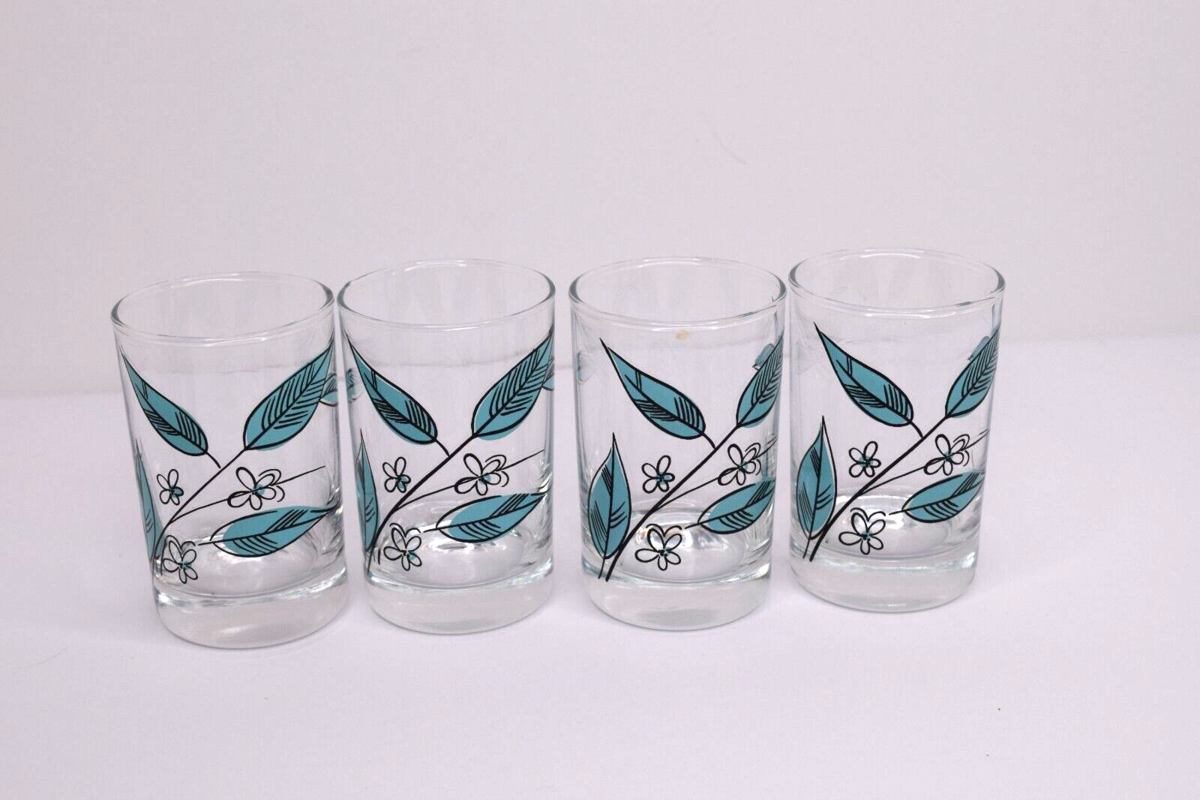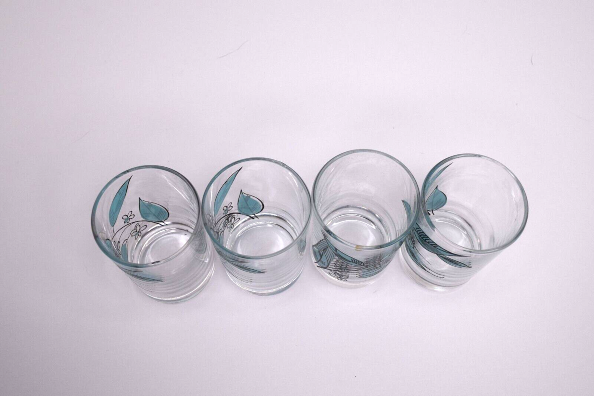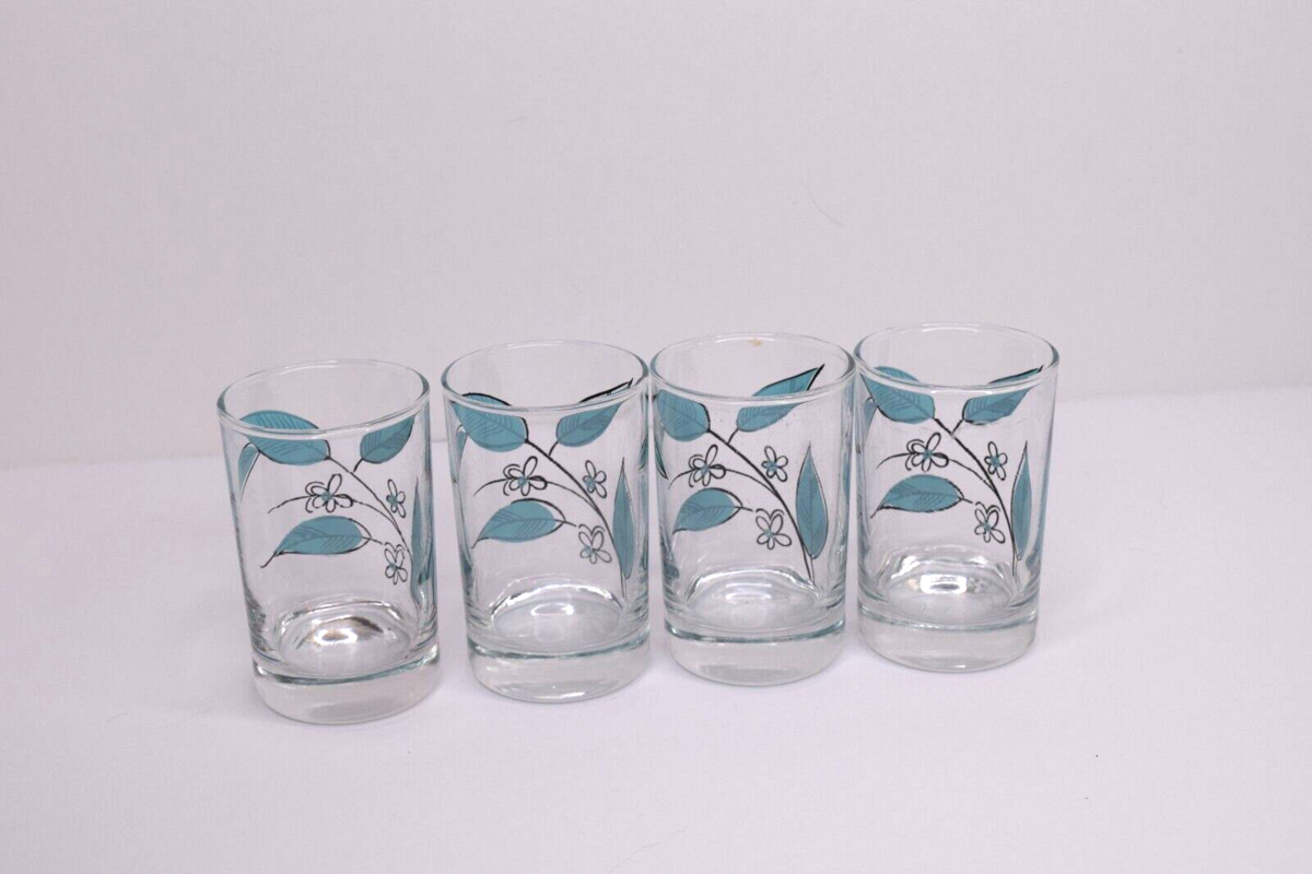Set of 4 Vintage Salem Biscayne/Royal Windsor 3.5" Juice Glass Blue Leaves 4 oz