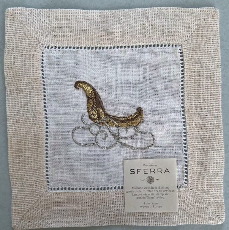The three sled napkins do not have sewn Sferra fabric