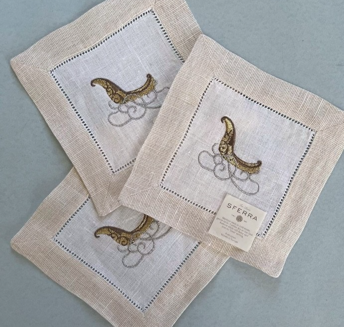 Sferra Embroidered Linen Cocktail Napkins and 50 similar items