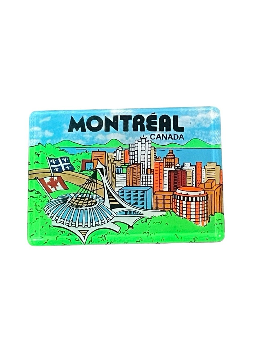 The Montreal Canada City Scape Souvenir Fridge Magnet is a modern and stylish collectible item perfect for any occasion. This rectangle-shaped magnet features a colorful illustration of Montreal's cityscape, making it a great travel souvenir. Made of plastic and metal, this magnet adds a touch of Canadian charm to your refrigerator or any other magnetic surface in your home. Ideal for city lovers and collectors alike, this unique item is sure to be a conversation starter.