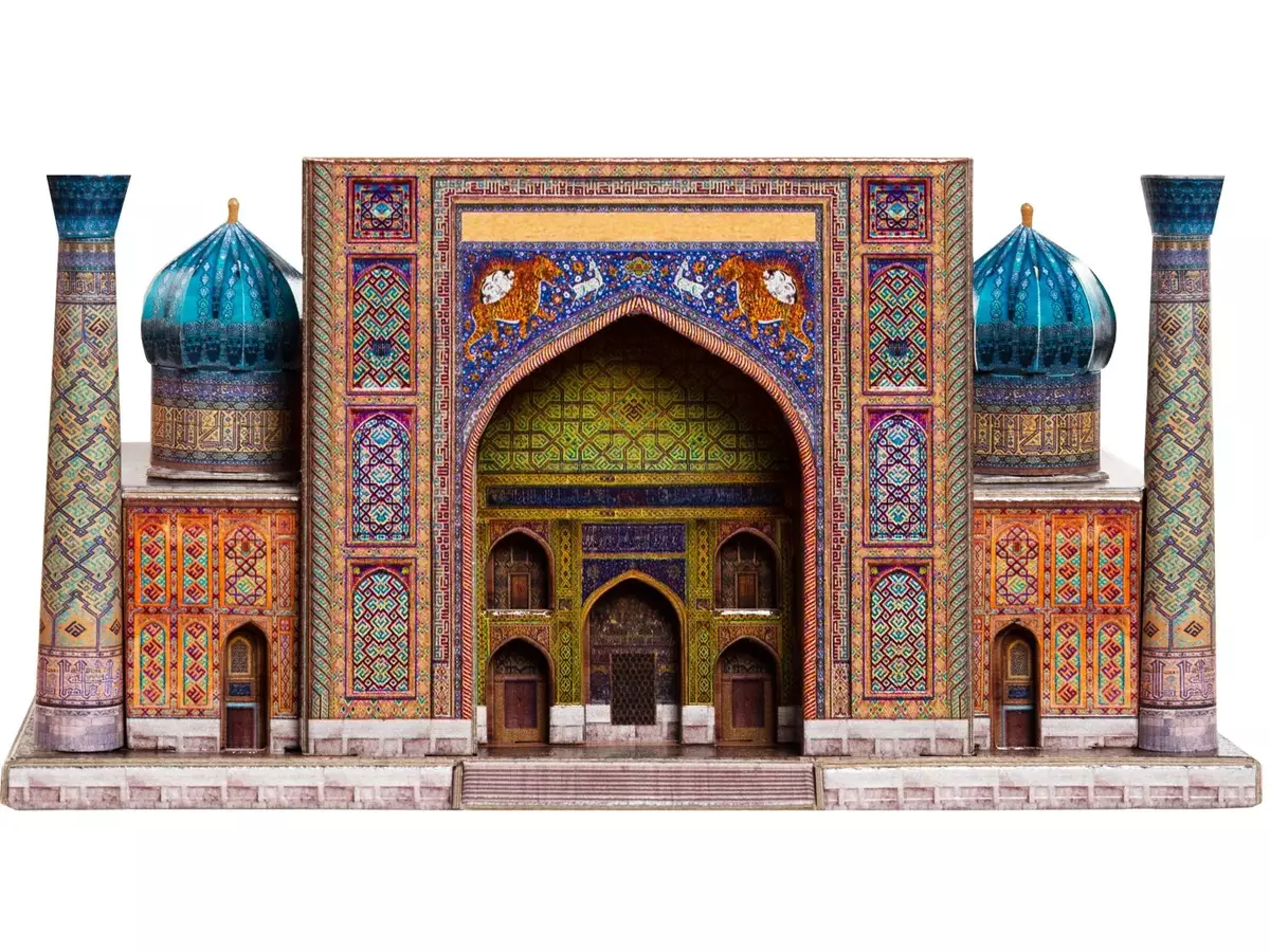 Recreate one of the most magnificent monuments of Central Asian architecture with this detailed 3D paper model of the Sher-Dor Madrasa.