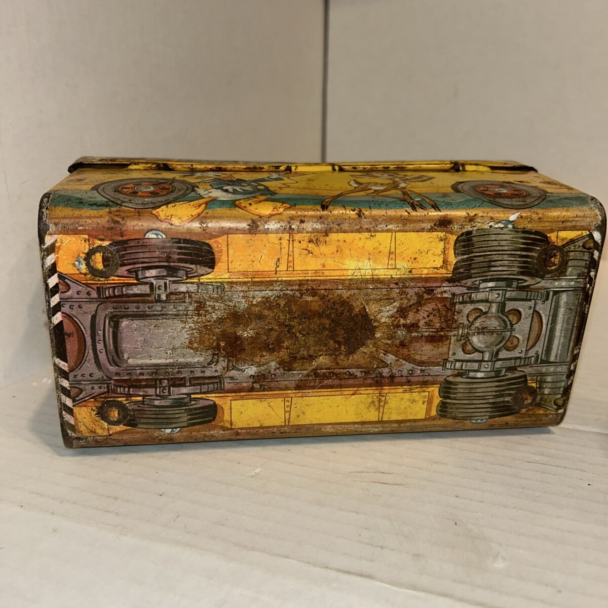 Vintage Walt Disney School Bus Metal Lunchbox Mickey Donald Pluto