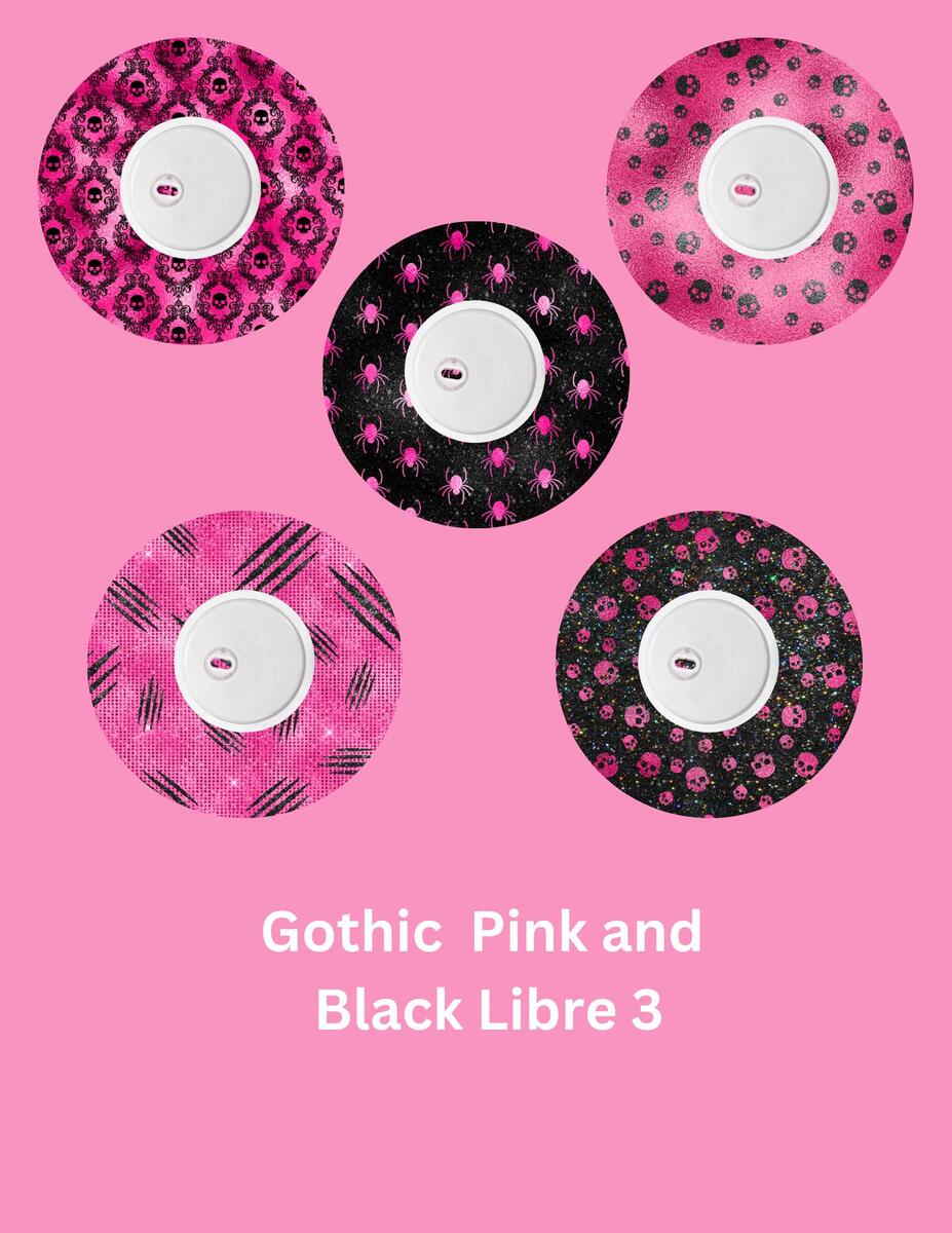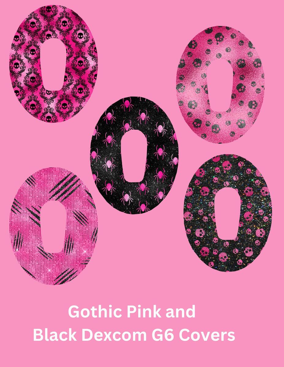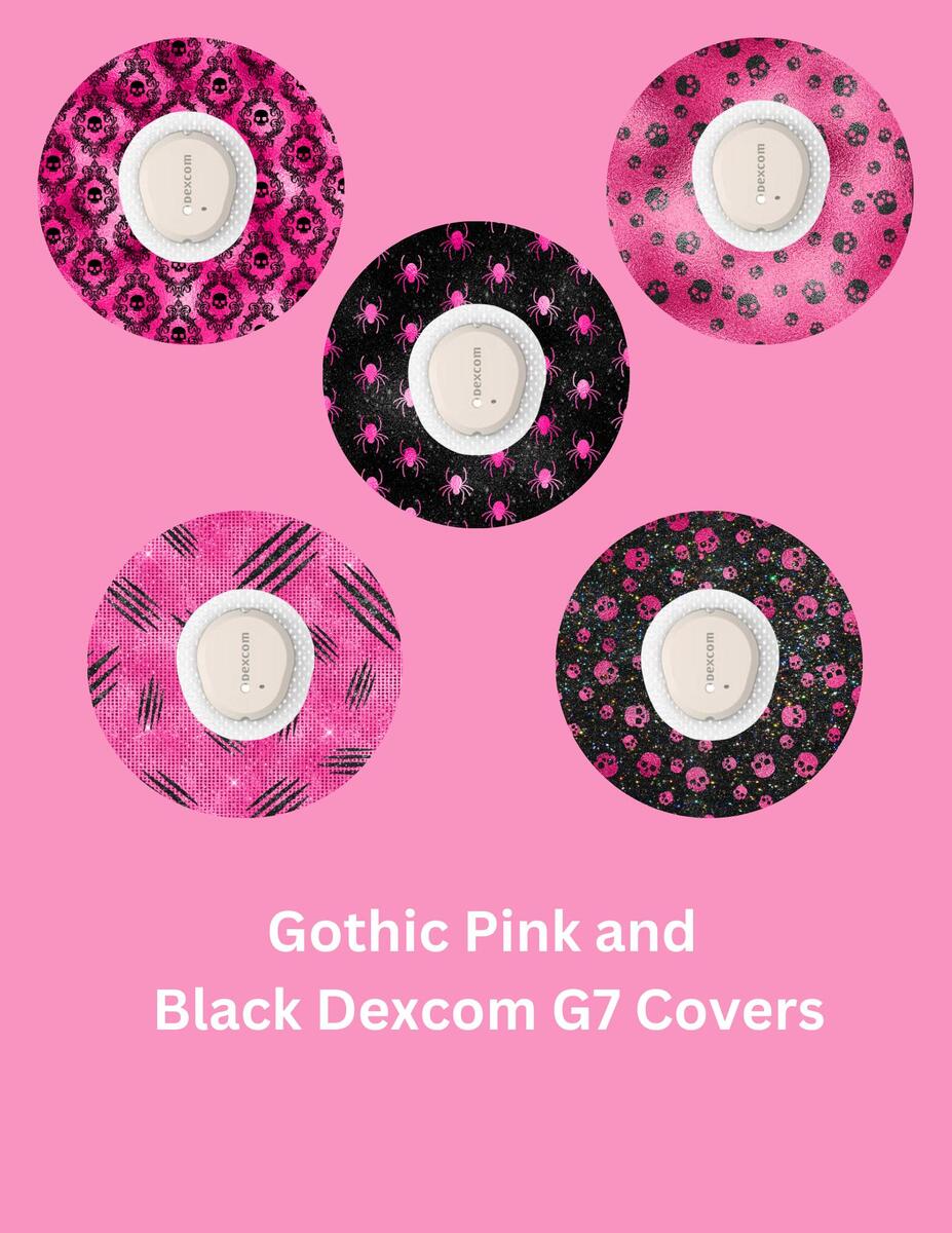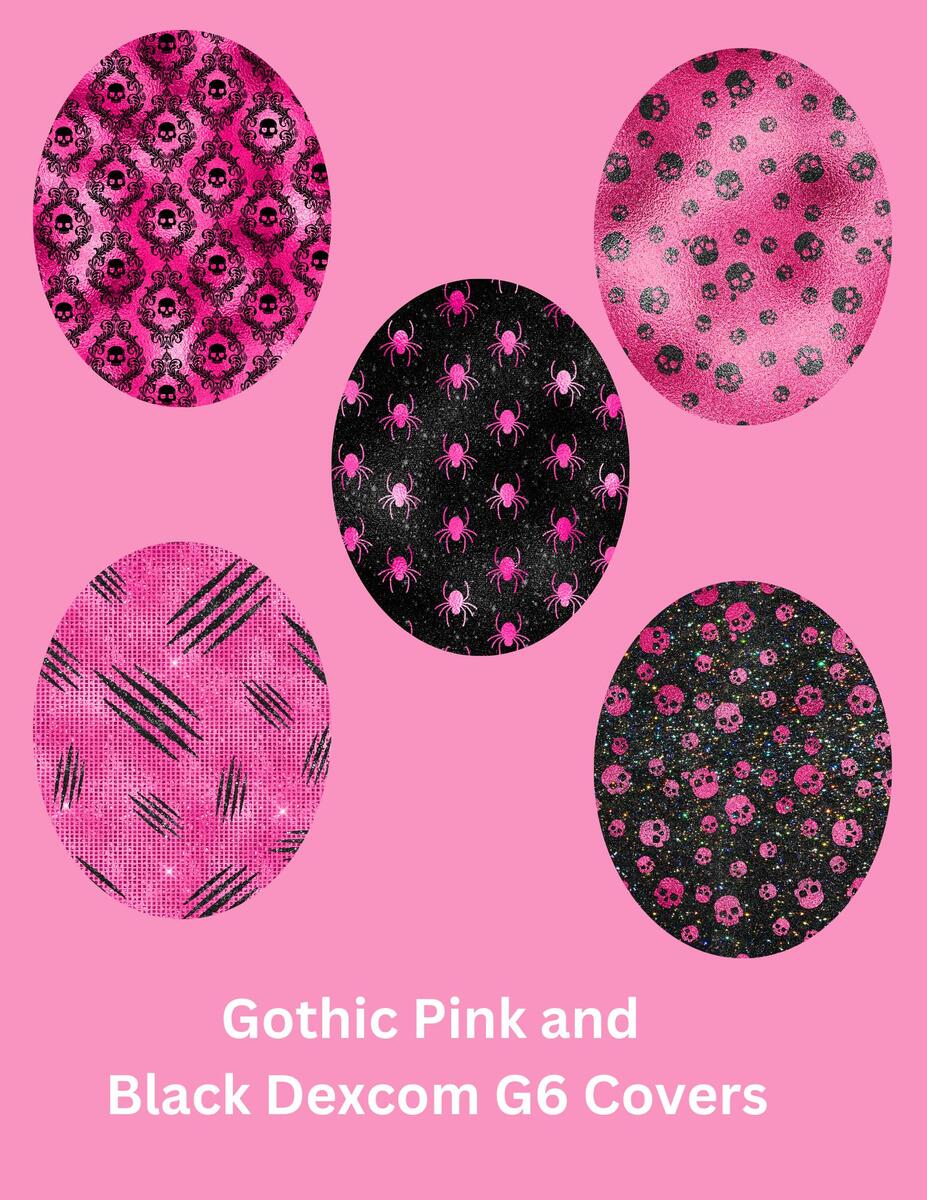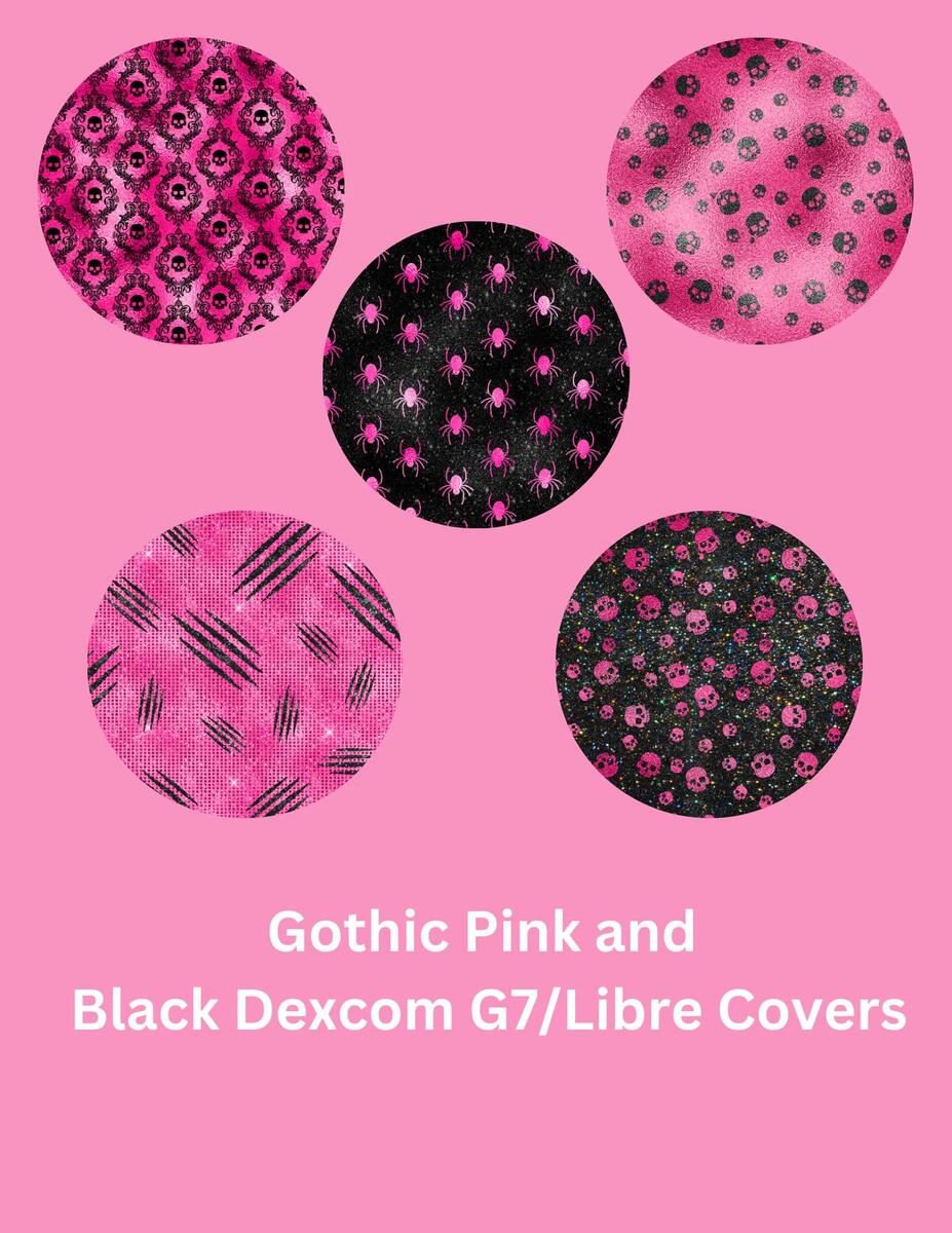 Gothic Pink & Black CGM Covers, Dexcom G7, Libre 3, Libre 2, Style Pack