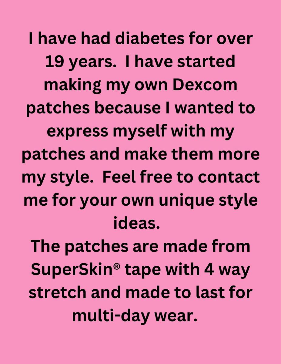 I have had diabetes for over 19 years. I have started making my own Dexcom patches because I wanted to express myself with my patches and make them more my style. Feel free to contact me for your own unique style ideas.