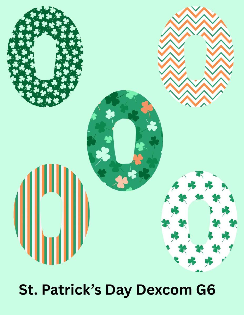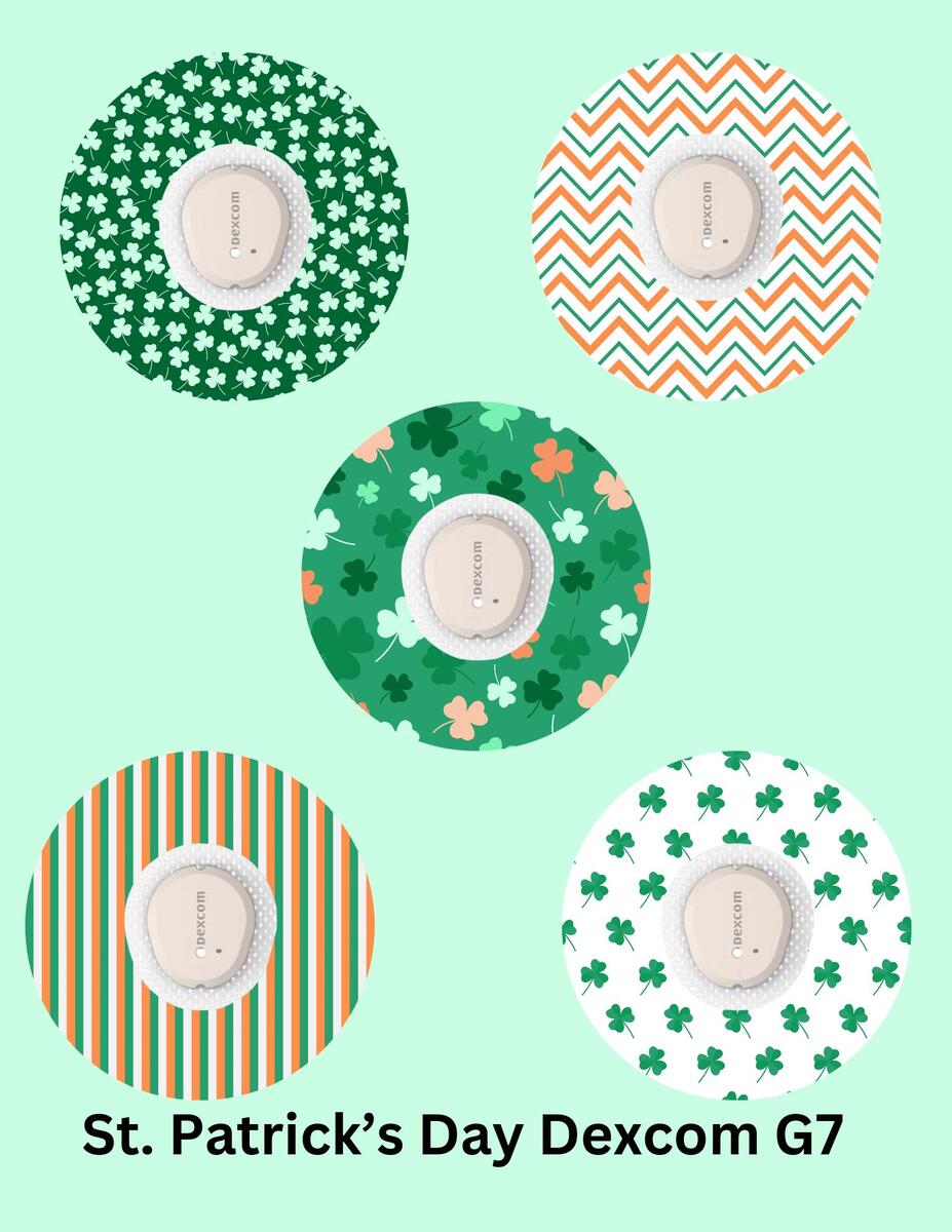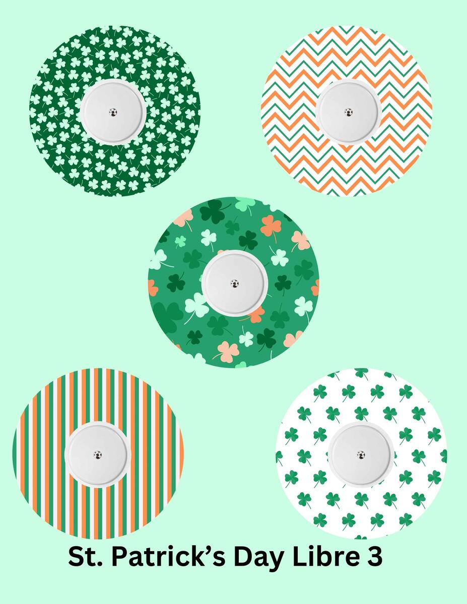 St. Patrick's Day CGM Stickers, Dexcom G7, Libre 3, SuperSkin Patches, 5-Pack
