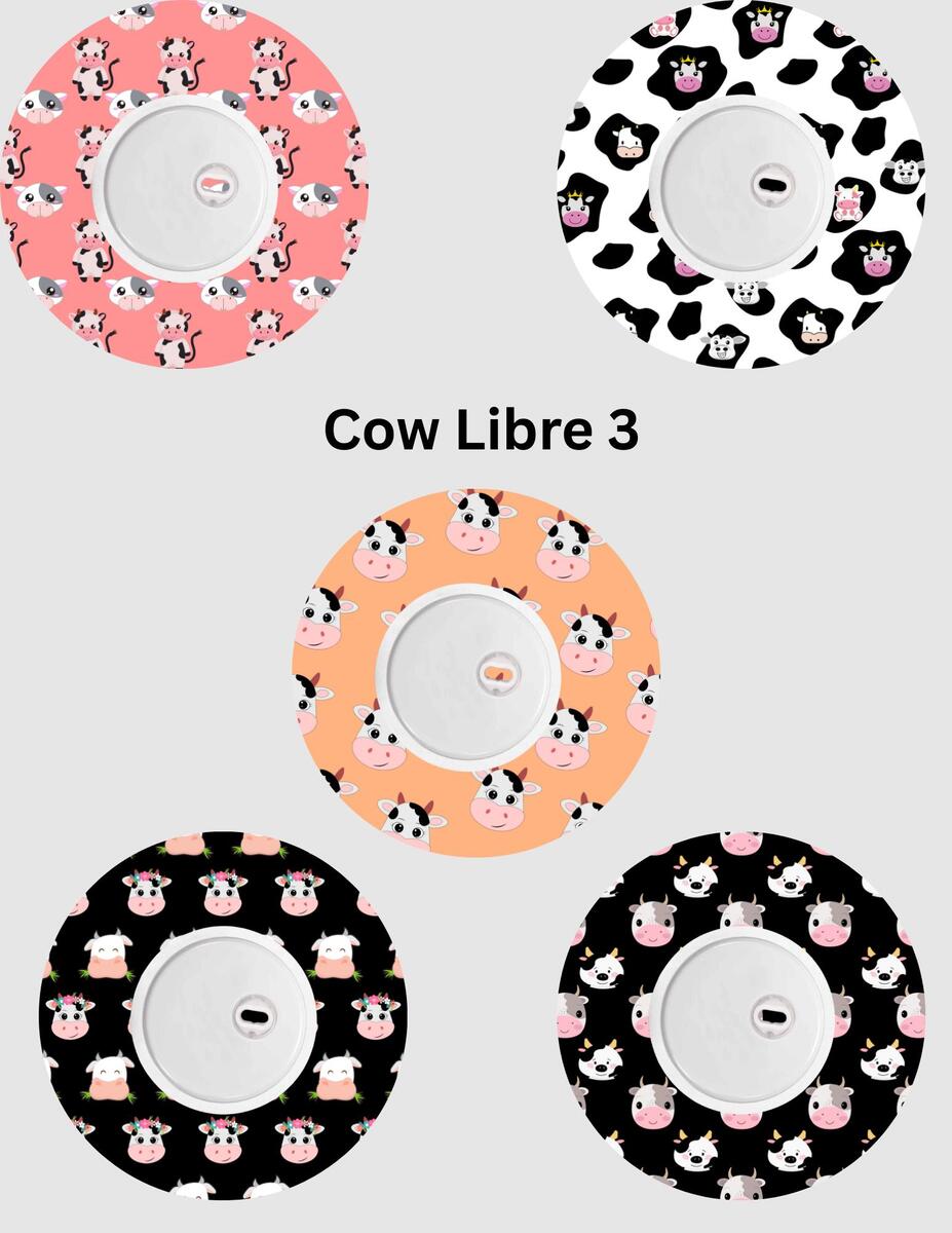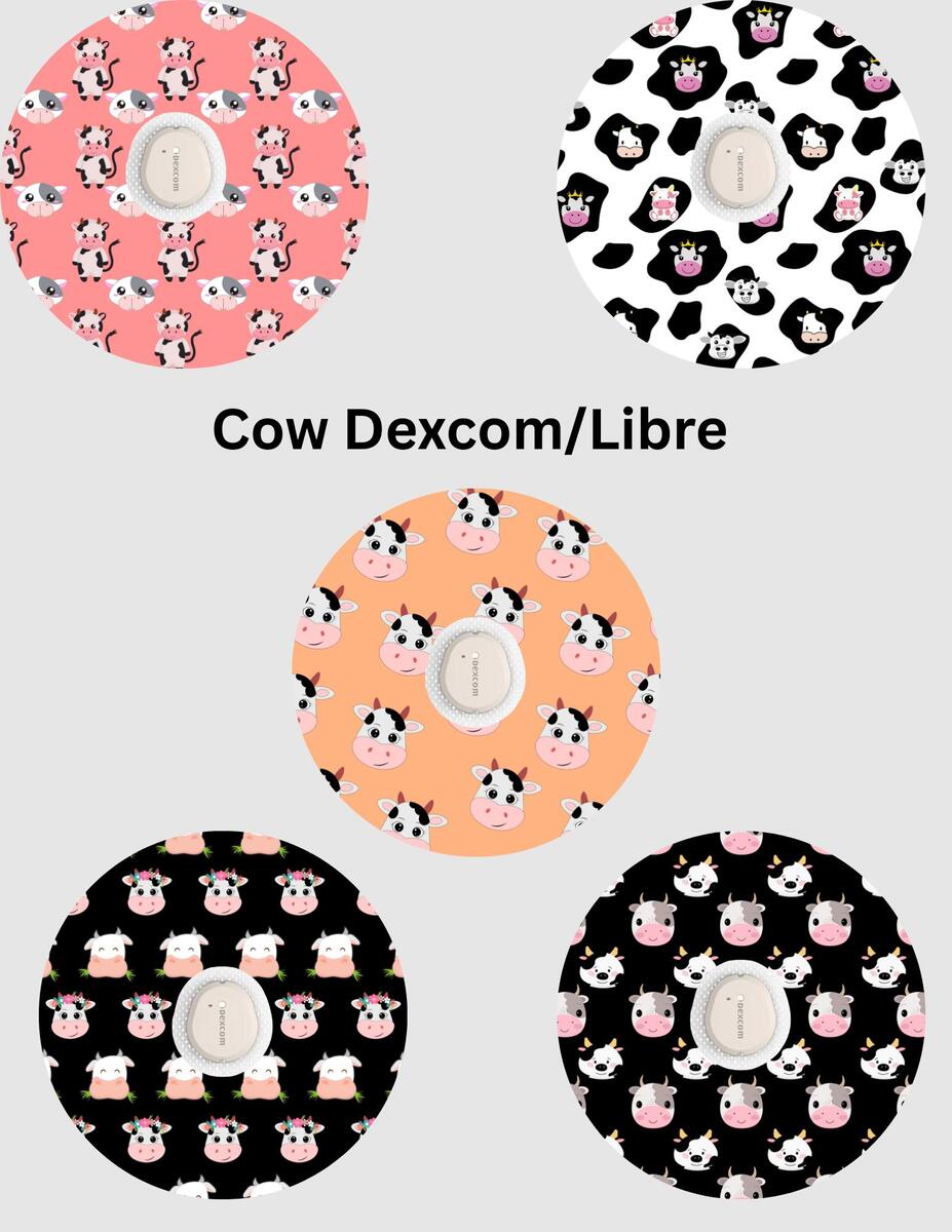 Cow Dexcom/Libre Sensor Covers, CGM Adhesive Patches, Set of 5