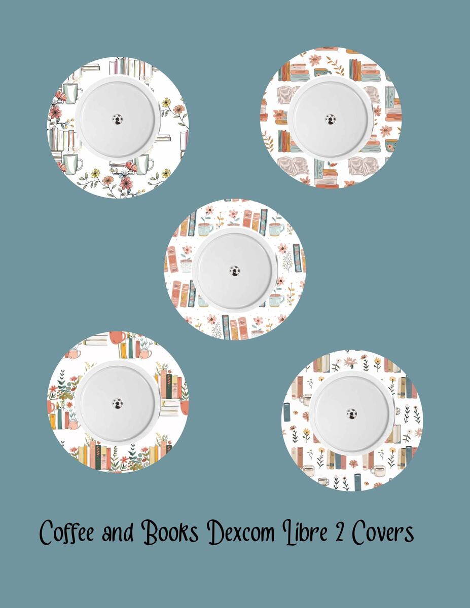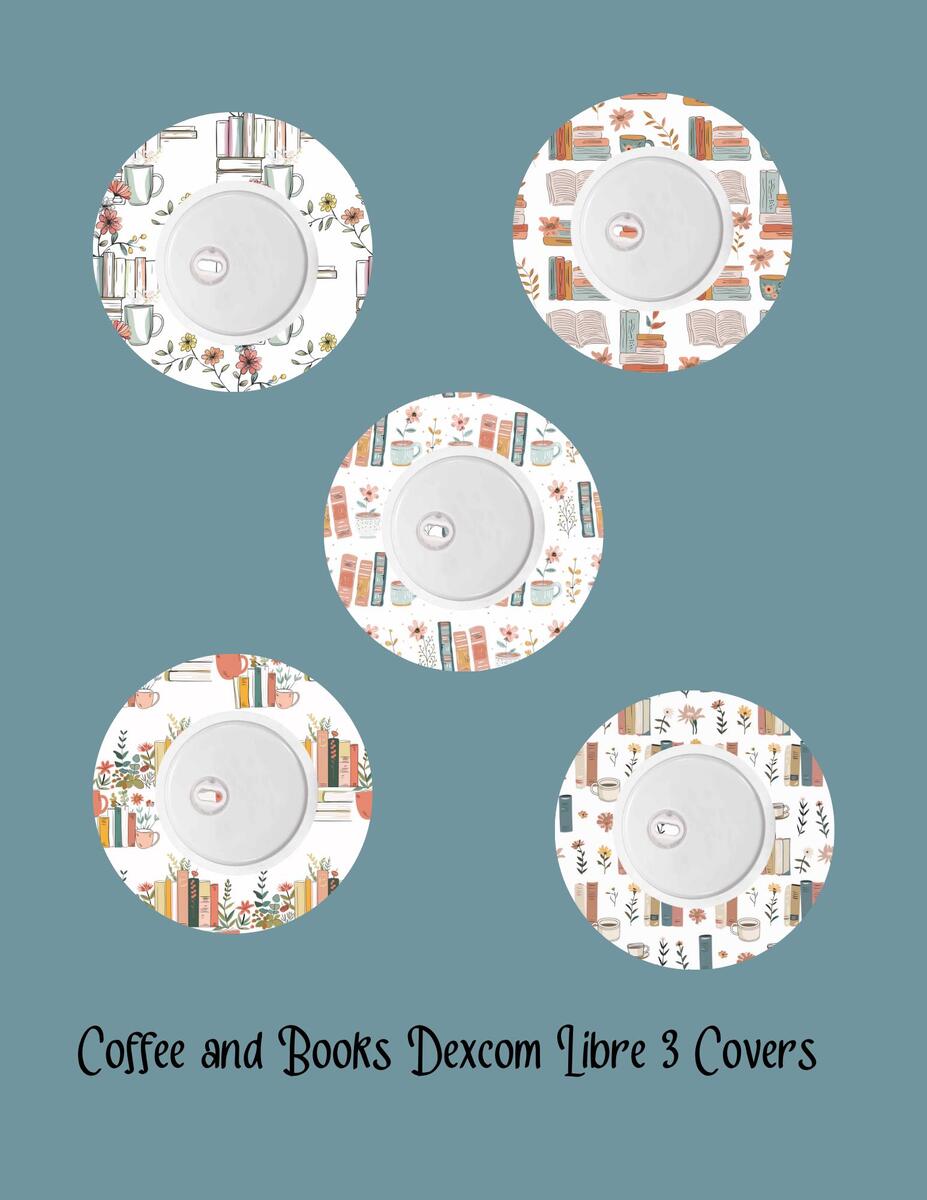Coffee & Books CGM Stickers | Dexcom G7/G6, Libre 2/3 (5-Pack)
