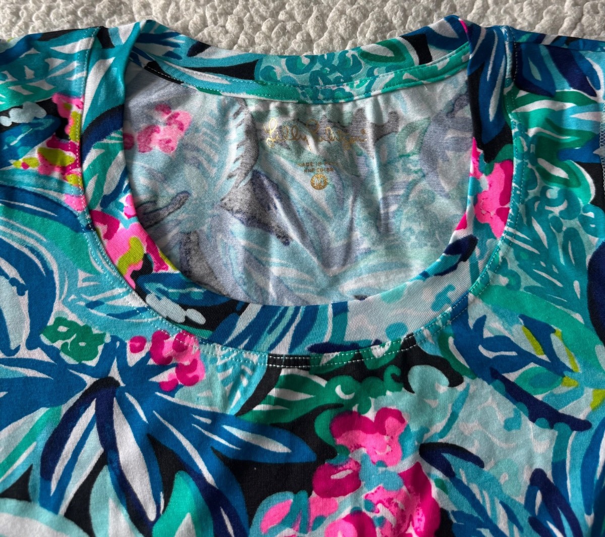 Lilly Pulitzer Shirt Women's Stretch Multicolor Short Sleeve Top Size M NWOT