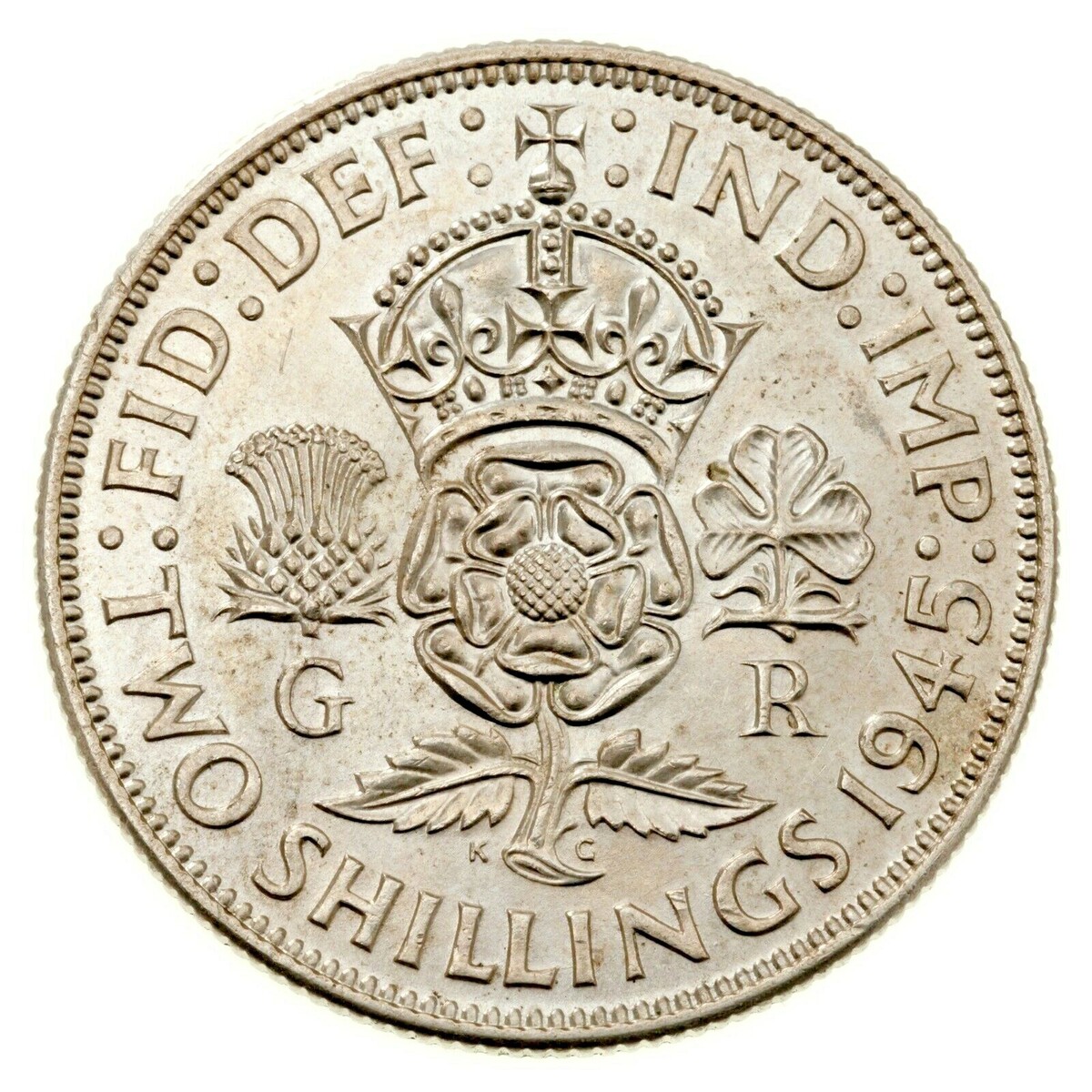1945 Great Britain Florin (2 Shillings) BU Condition KM 855