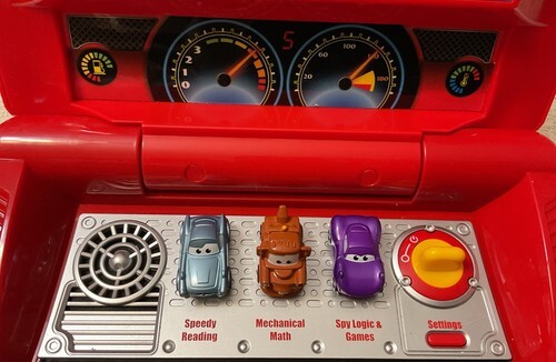 "Join McQueen and the gang on a learning adventure. The VTech Lightning McQueen Learning Laptop features 15 activities
