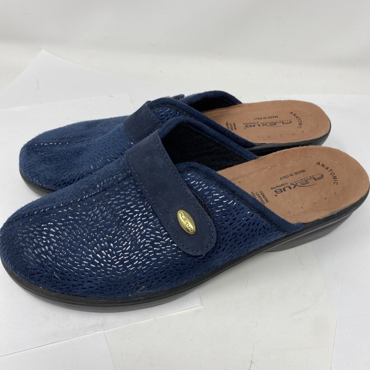 Flexus by Spring Step Women's Leather Merula Merula Mules Navy Size 42 US 10,5