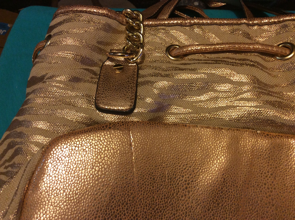 UNBRANDED WOMENS GOLD HANDBAG / PURSE with DOUBLE HANDLES and SHOULDER STRAP