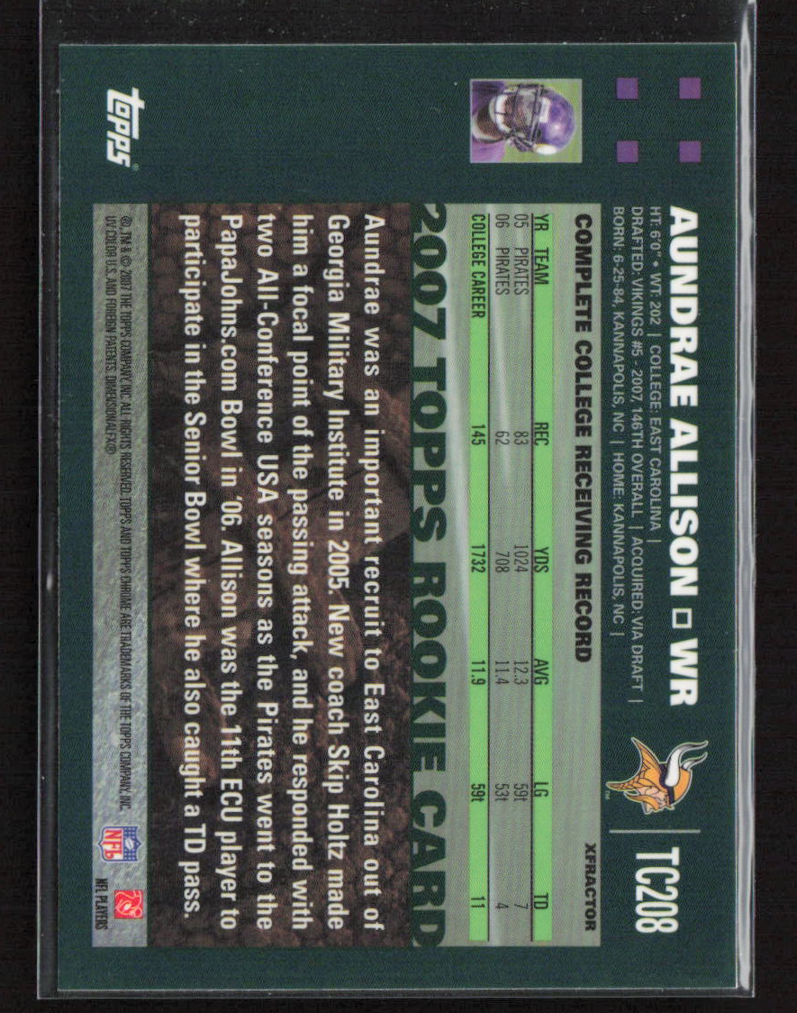 2007 Topps Chrome #TC208 Aundrae Allison Xfractors RC
