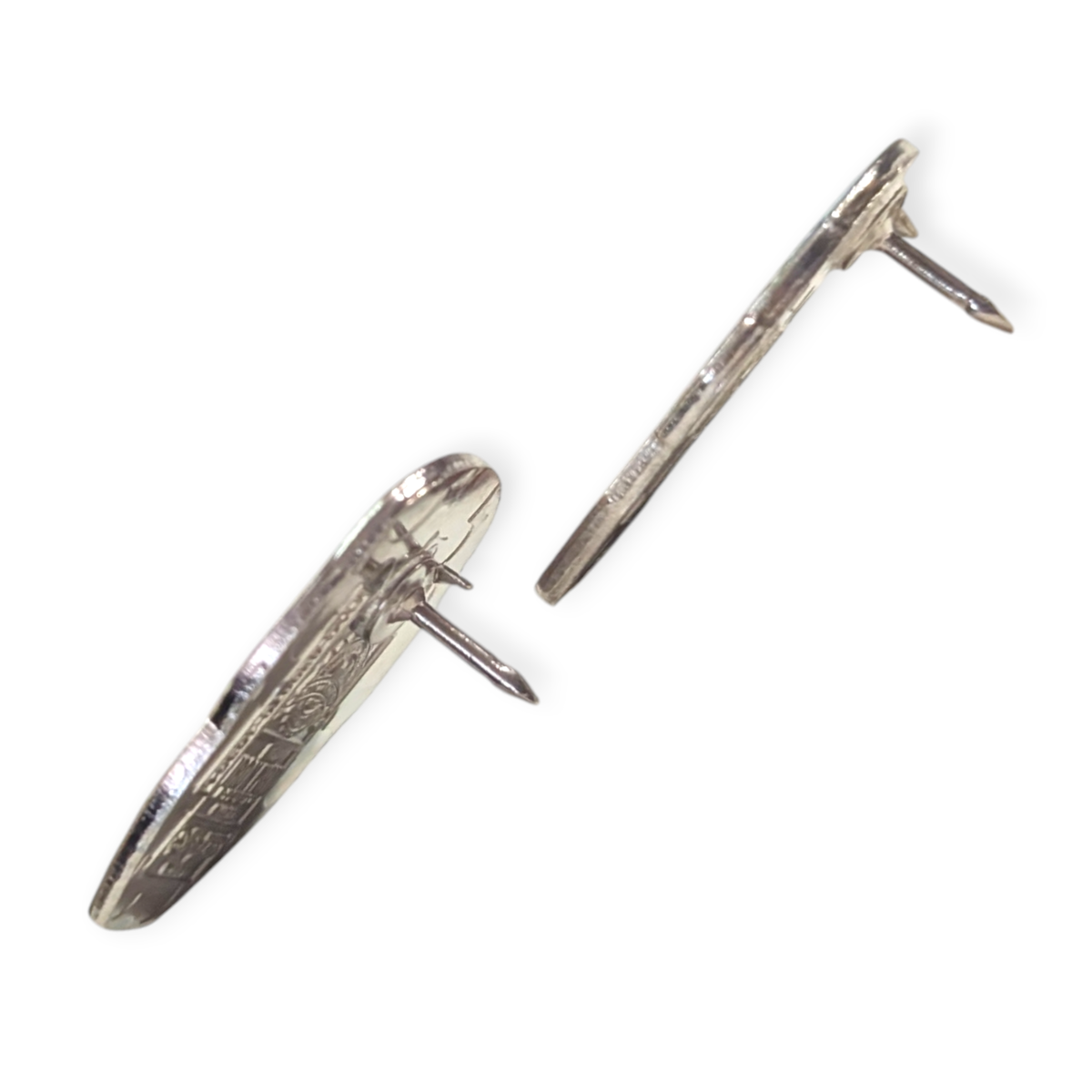 • Sculpted metal with enamel, and finished with a rubber back to keep secure.