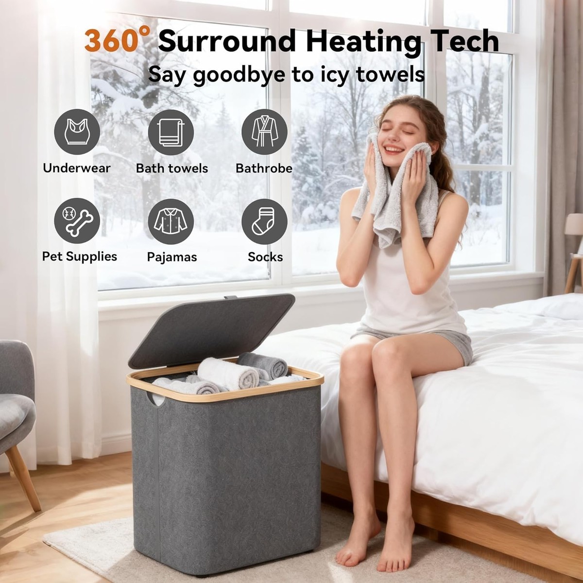 Innovative 2-in-1 Design: Functions as both a 35L towel warmer and a spacious 46L laundry basket.