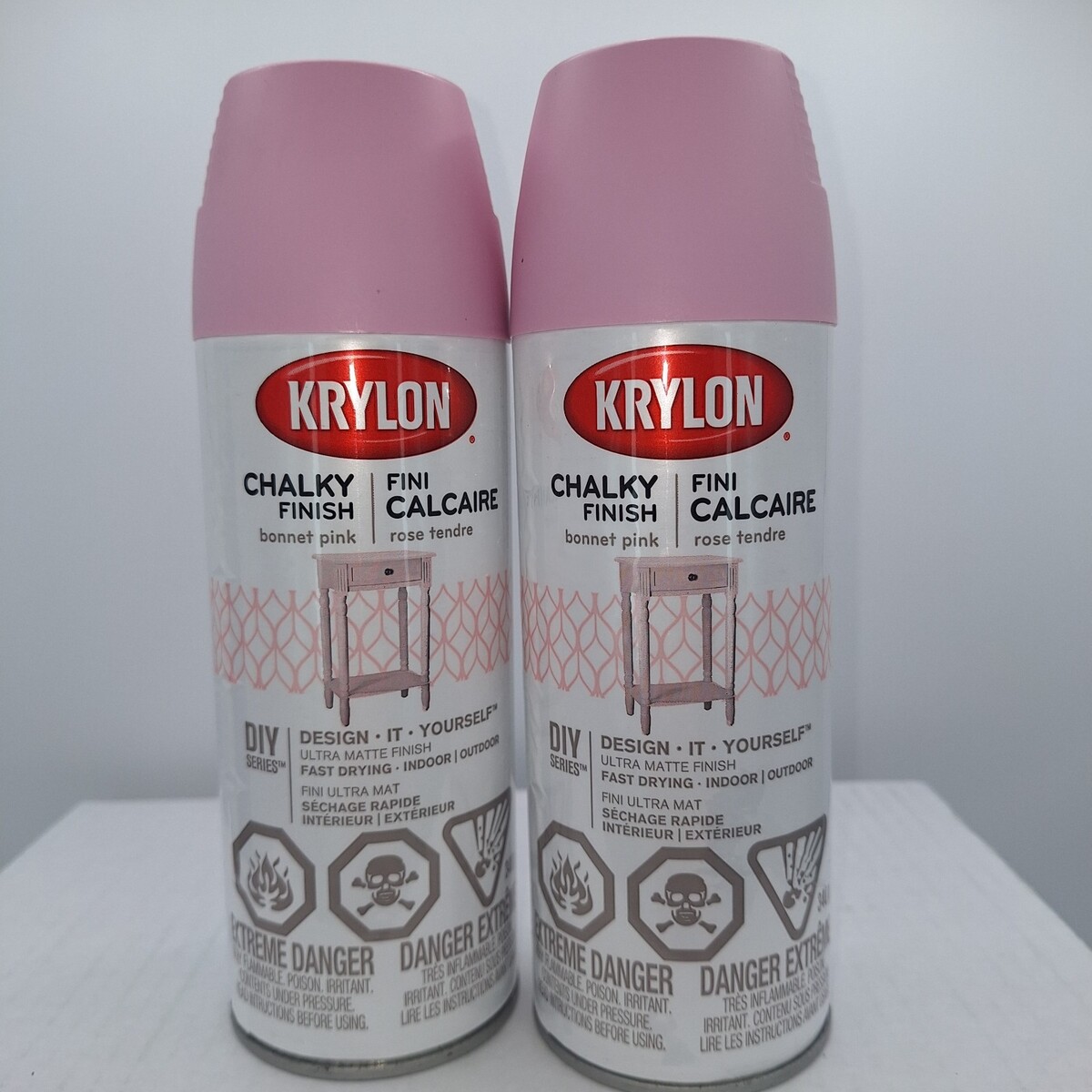 Krylon Chalky Finish Bonnet Pink 44116 Spray Paint DIY Series 12 Oz New 2 Cans