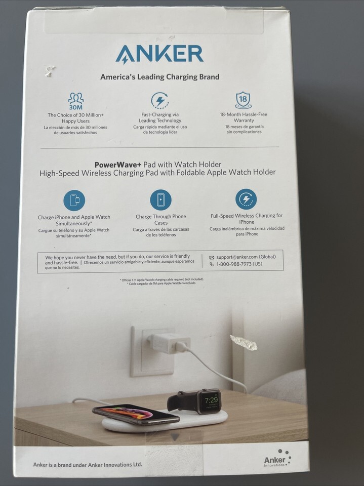 Anker PowerWave+ Wireless Charging Pad for iPhone 14/13/12/11 & Apple Watch