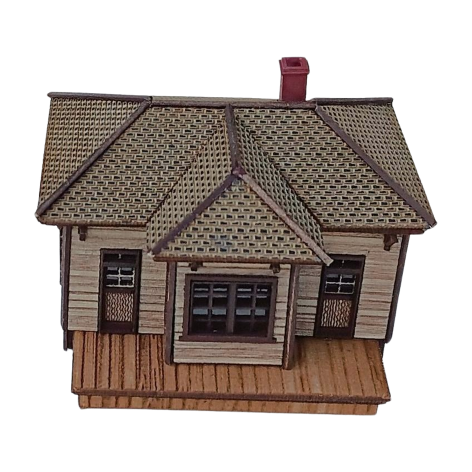 This compact depot captures the charm of early 20th-century American railroading. Featuring clapboard siding, a wood plank platform, detailed windows, and a hipped shingle roof with decorative brackets, it reflects the small-town stations that once served as community hubs. Versatile in design, it fits eras from the steam age through early diesel, making it ideal as either a passenger stop or a mixed-use station on any layout.