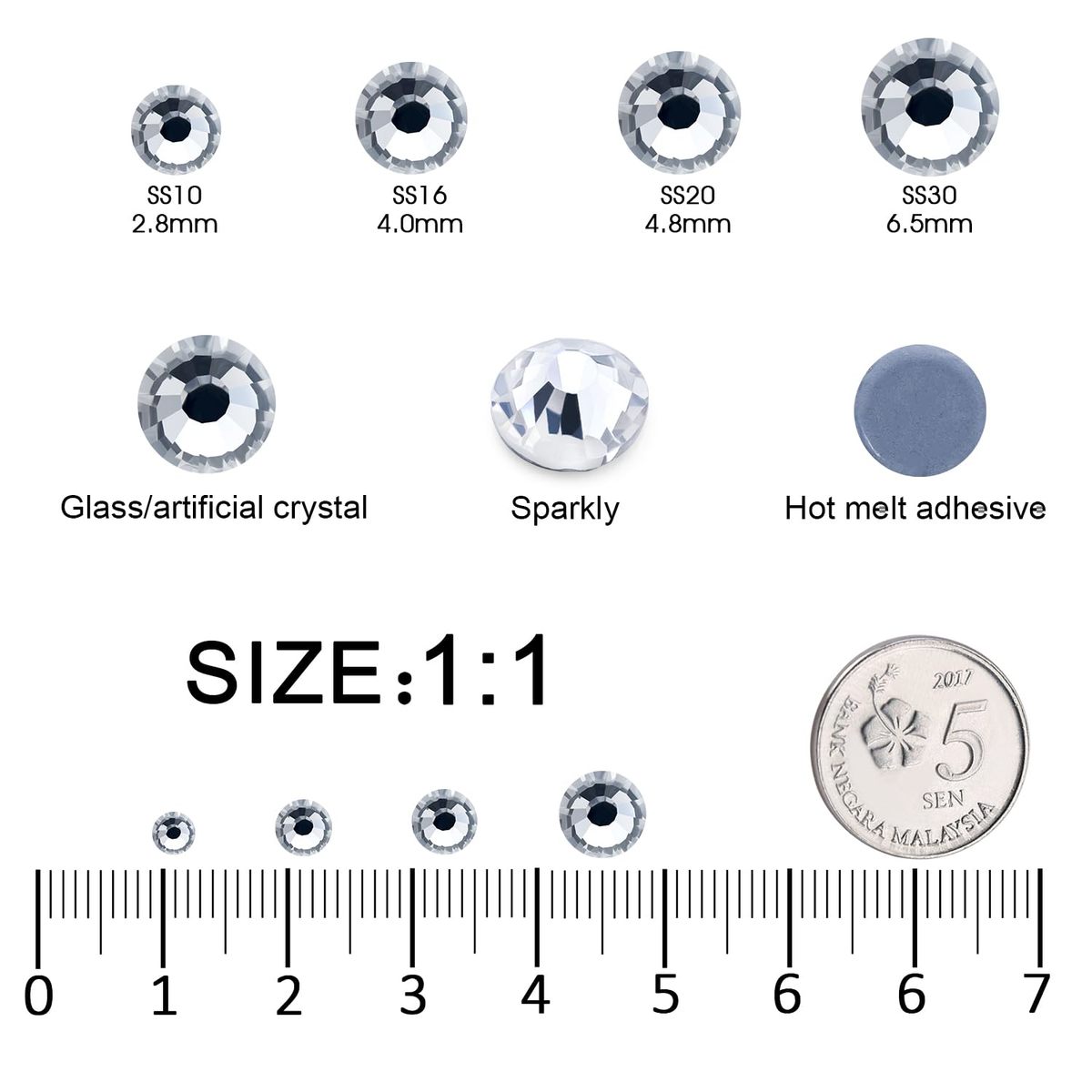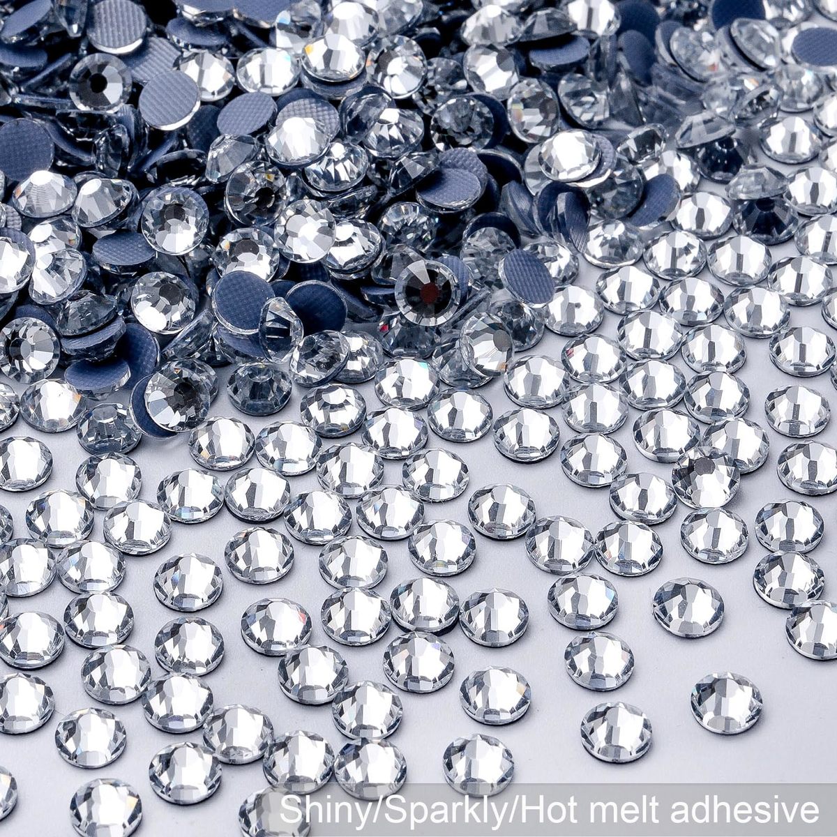 Material: Glass/Artificial Crystal, Flat Back Round, High-precision cross-section, multi-sided cutting, high brightness, high Sparkly; These thermal repair rhinestone bottoms are heat activated glue that melts and sticks when heated; The Clear runs through the entire crystal, and the crystal does not fade,Can be used to Diy Shoes, Clothing, glass, glass cup, Arts, crafts, metal, sunglasses, plastic, Silk, leather, denim, lycra, cotton, wool, linen, paper, polyester, Daruma, wood, canvas, nylon, decoration nail, face; Can't be used on teeth; Ideal for making unique birthday, christmas, thanksgiving gifts for family, kids, friends, lovers, girls,Use tweezers and Picking Pen gem picker to pick rhinestones, Hotfix Applicator or household ironer, heat press machine for heat repair and fixation, after the heat activated glue melts, stick on the object and lightly press the rhinestones for about 5 seconds; Can also be glued with E6002 glue,We have 20 years of experience in manufacturing and selling Rhinestones; If you have any questions about the diy process of rhinestone, please contact us; The professional team will reply to you within 26 hours