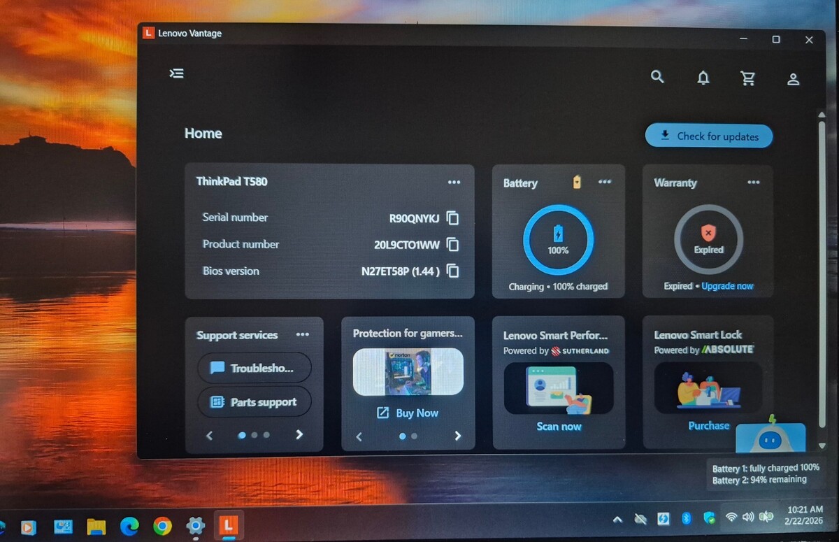 The Lenovo Vantage App is installed, was run and all Drivers, Firmware and Bios were updated.