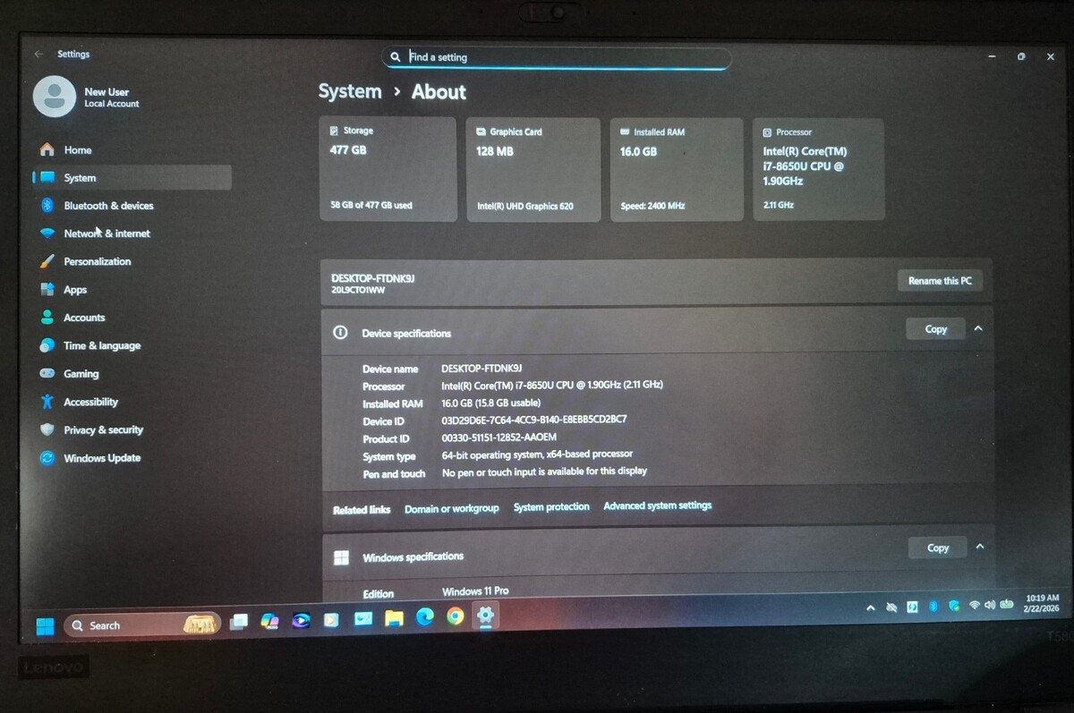 LENOVO THINKPAD T580 LAPTOP i7-8650U 16GB RAM 512GB SSD WIN 11+ OFFICE 2021