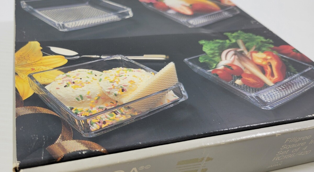 *D) Vintage Mikasa Crystal 4 Square Individual Bowl Set Japan RC186/420