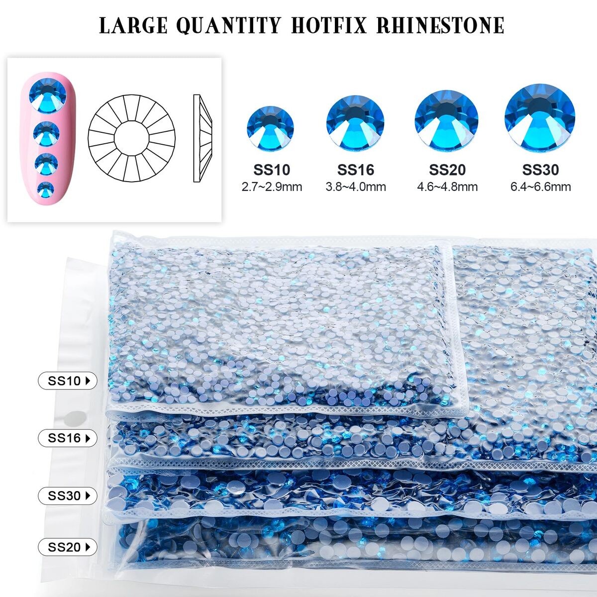10000PCS Capri Blue Hotfix Rhinestones Bulk, Glass Crystal Hot Fix Rhinestones f