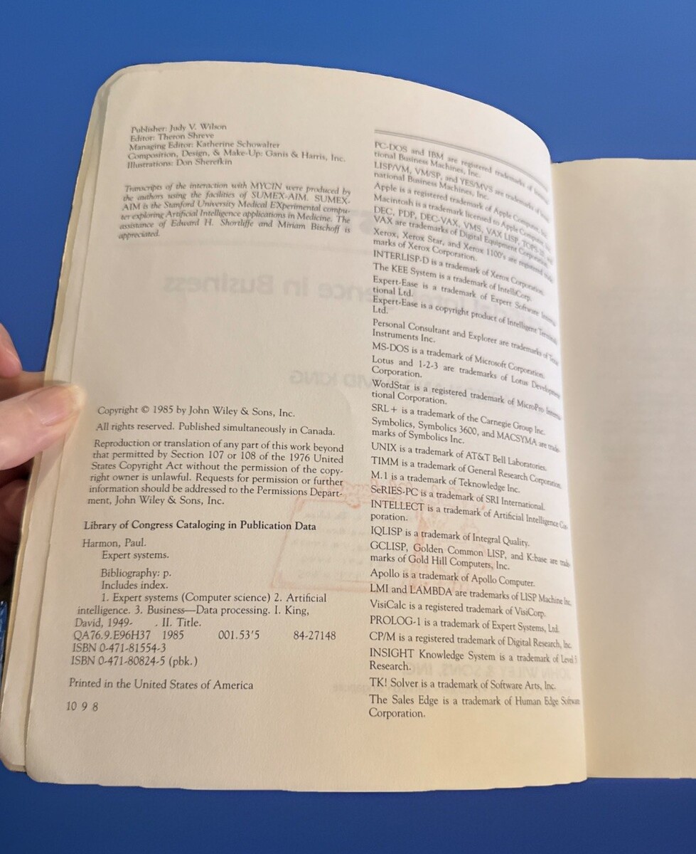 The "Expert Systems: Artificial Intelligence in Business" paperback book, published in 1985 by Wiley Sons, Incorporated, John, is a textbook focusing on the subject area of computers and artificial intelligence. Written by David King and Paul Harmon, the book covers topics in intelligence (AI) and semantics, as well as data processing. It includes features such as an expert system, appendices, and an index, providing readers with a step-by-step process of developing an AI system in a business setting. The book is illustrated by Robert Pasternak and is presented in English language, making it a valuable resource for those interested in the application of AI in business.