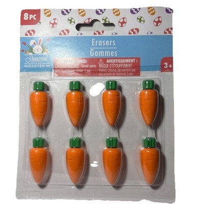 NEW Seasonal/Easter Small Carrot Themed Erasers For Kids Ages 3+—8pc