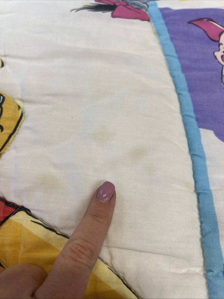 90’s VTG Disney Winnie The Pooh Quilt Crib Blanket Patchwork Reversible READ