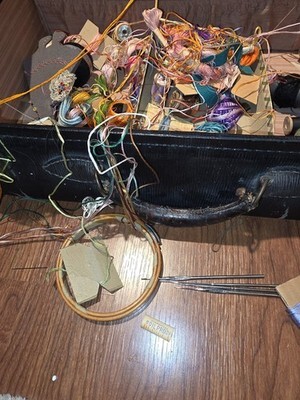 Grandmas Old Sewing Kit Vintage Sewing Supplies Thread Needles Floss Suitcase