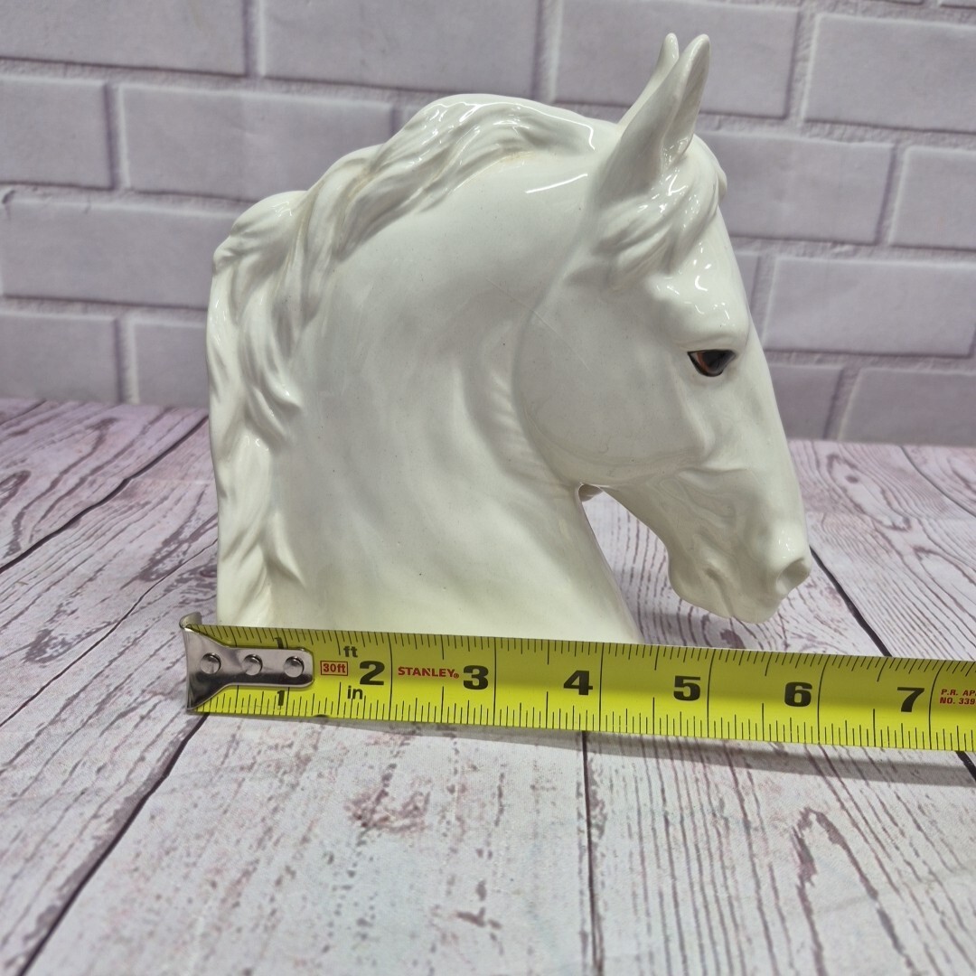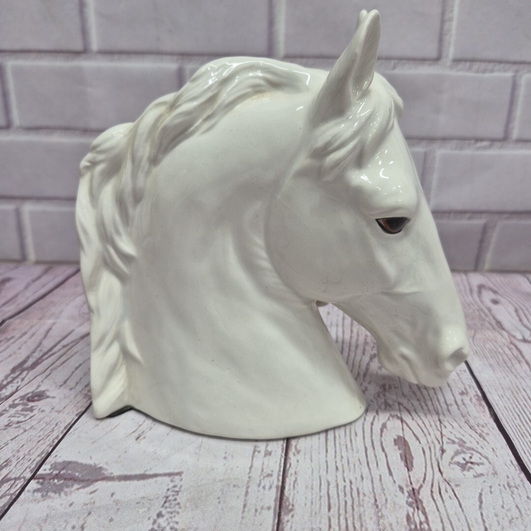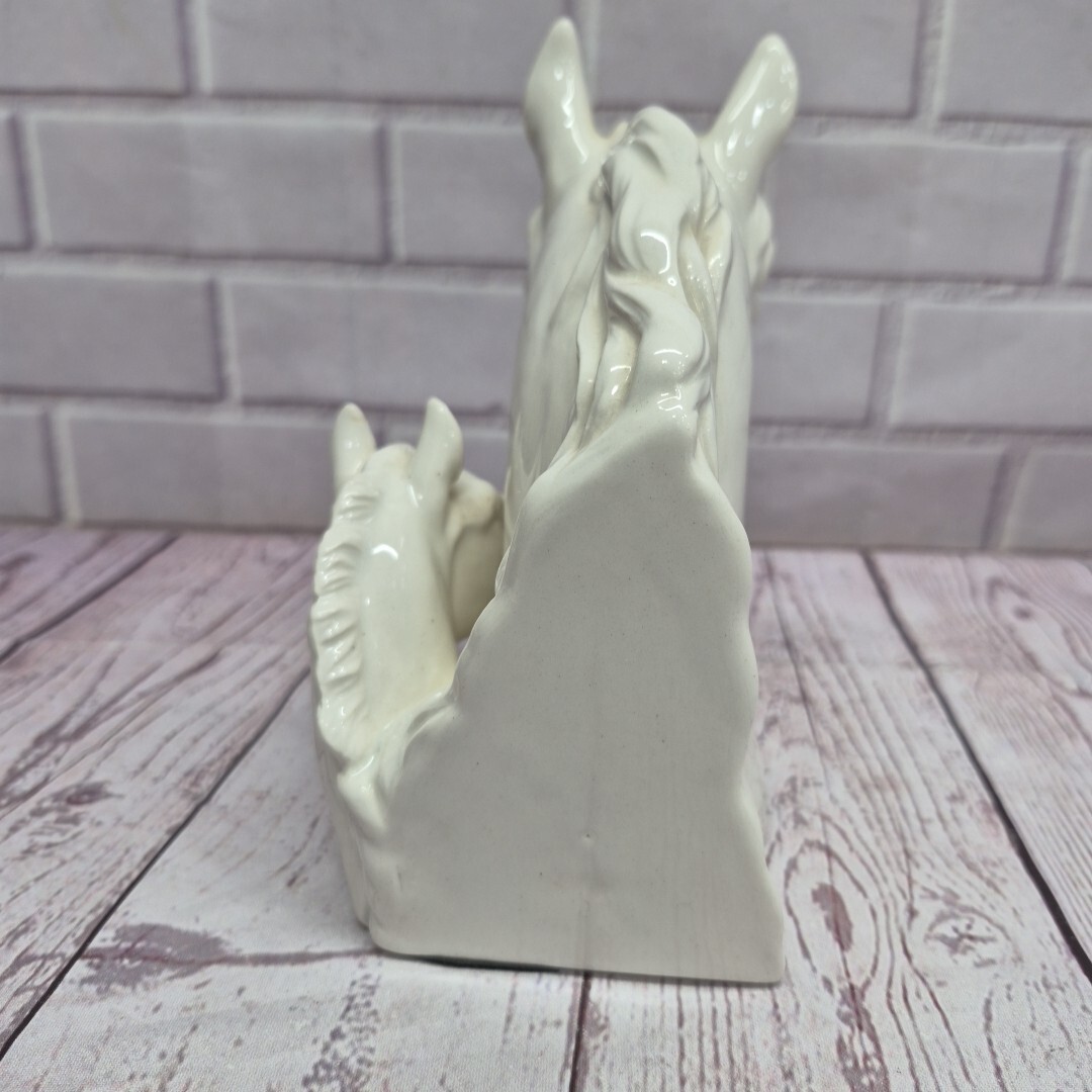 This Vintage Napcoware Japan Ceramic White Horse Fowl Mare Bookend is a charming and unique piece for collectors or horse enthusiasts. Made in Japan, this glossy white ceramic bookend features a detailed horse shape, perfect for adding a touch of whimsy to any bookshelf or display. The animal print pattern and horse subject make it a standout decorative collectible, ideal for those who appreciate horse-themed pieces in their home decor.