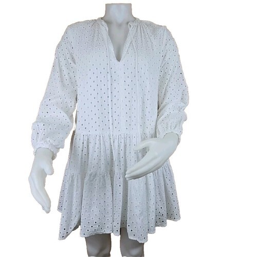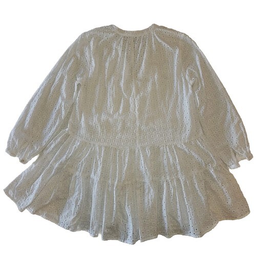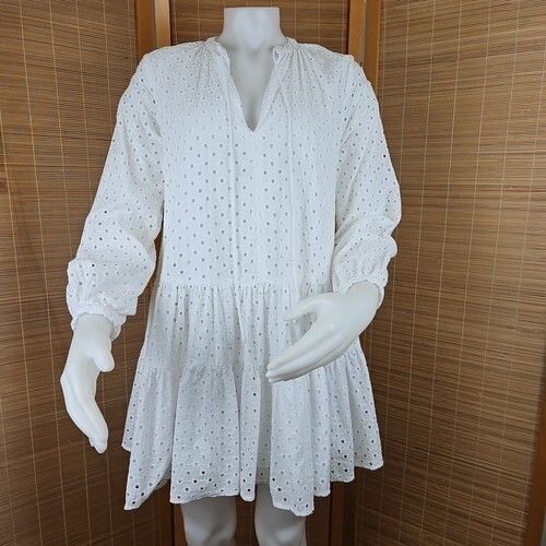 ASOS White Cotton Dress UK8 US 4 Eyelet Boho Flounced Mini Long Sleeve Tunic