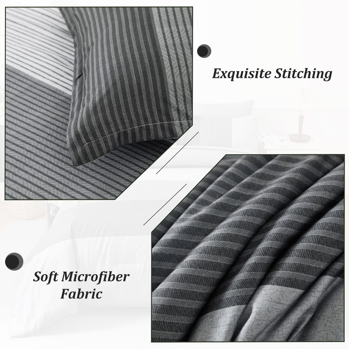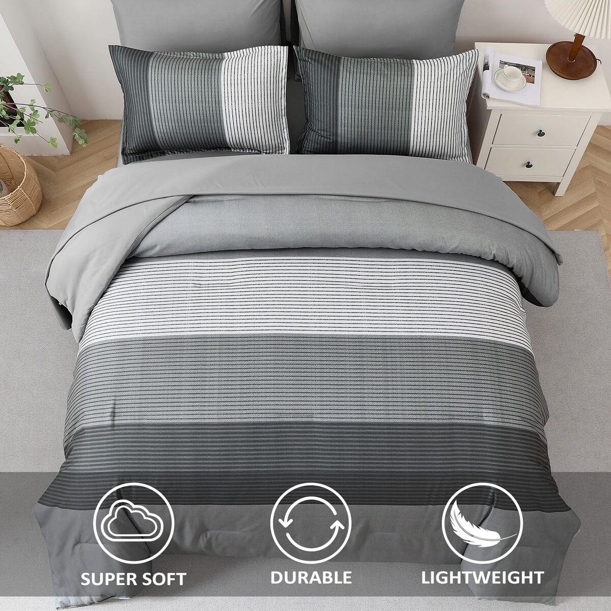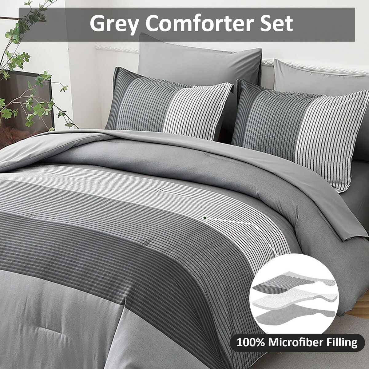WONGS BEDDING Grey Comforter Set Queen Reversible Patchwork Microfiber Boho 3 Pi