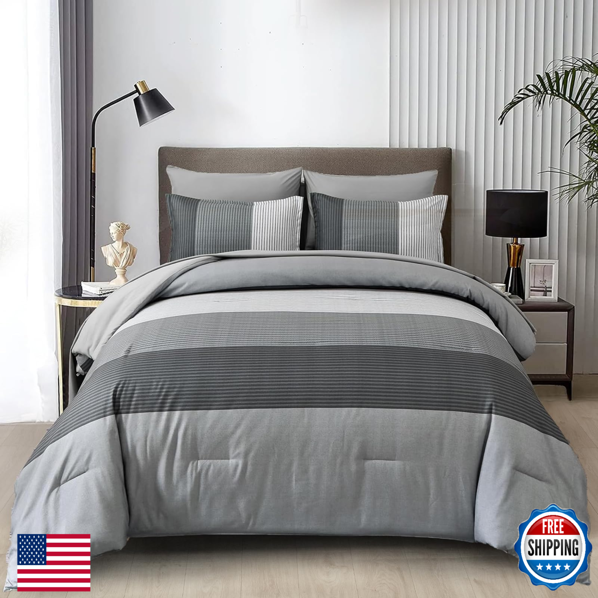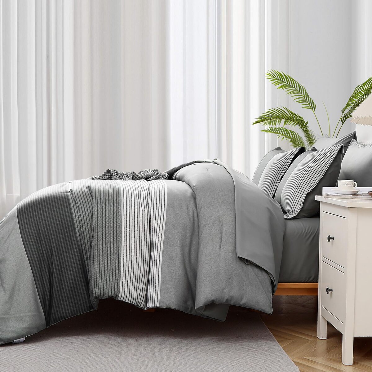 WONGS BEDDING Grey Comforter Set Queen and similar items