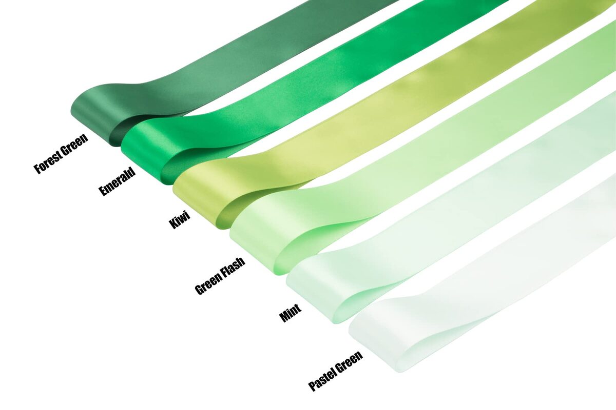 ? Our premium polyester ribbons offer the perfect combination of softness and shine, adding an elegant touch to any creation.,? Discover our 6 stunning ribbon colors from the green color family. These vivid ribbons make a bold statement and are easy to choose from, perfect fit for any occasion.,? Fondersy ribbon constructed with density weave, it won't fray or loose strings anywhere. Its smooth surface and wrinkle-free nature make it the perfect choice for creating stylish.,? Solid ribbons are classic and versatile, making them perfect for a variety of uses such as crafts, gift wrapping, DIY projects, Christmas decorations, headbands, sewing, and bridal bouquets.,? All our ribbons are carefully packaged, with cost-effective 100-yard options available. Note that sometimes 100-yard ribbons may contain splices.