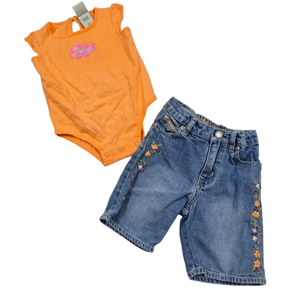 Baby Gap Floral Jeans Capris Bodysuit 100% Cotton 3-6 Y2K Ladybug Embroidery VTG