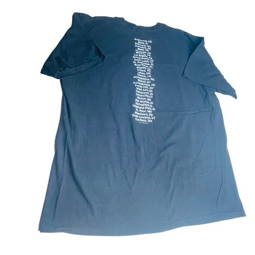 The shirt has a relaxed fit with a crew neckline and short sleeves, making it suitable for any season. It is a size XL and has double-sided features, with one side featuring the tour design and the other side featuring a solid black color. This t-shirt is perfect for music lovers who want to show their love for the iconic artist and his unique style.