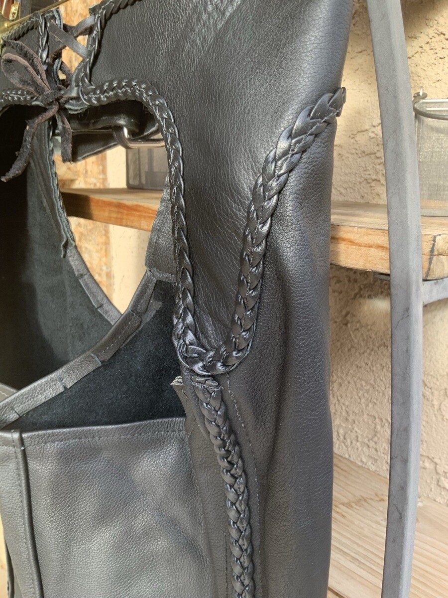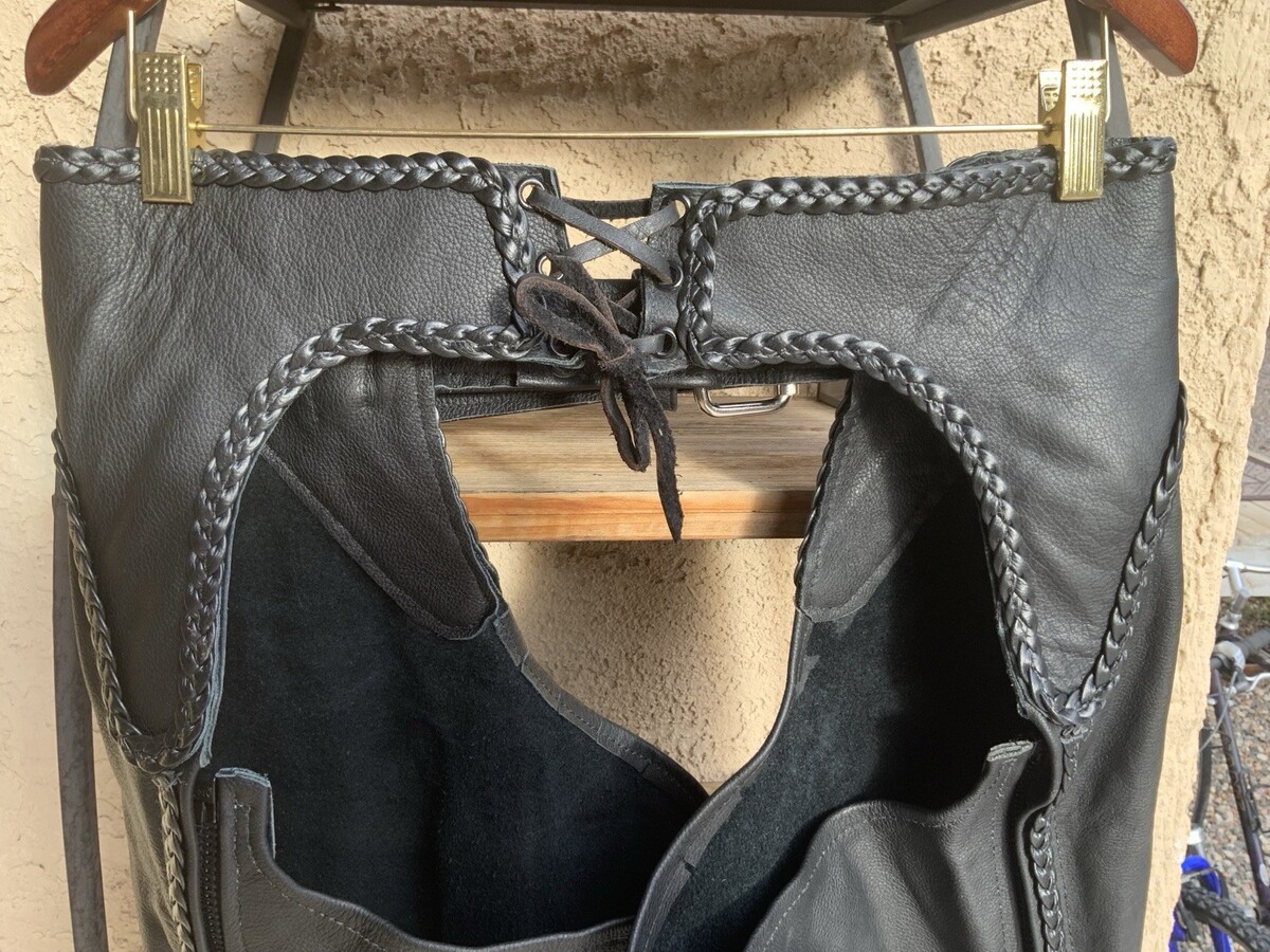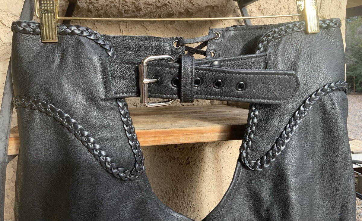 Purple Hog Leathers USA Black BRAIDED Leather Assless Heavy Duty Biker Chaps