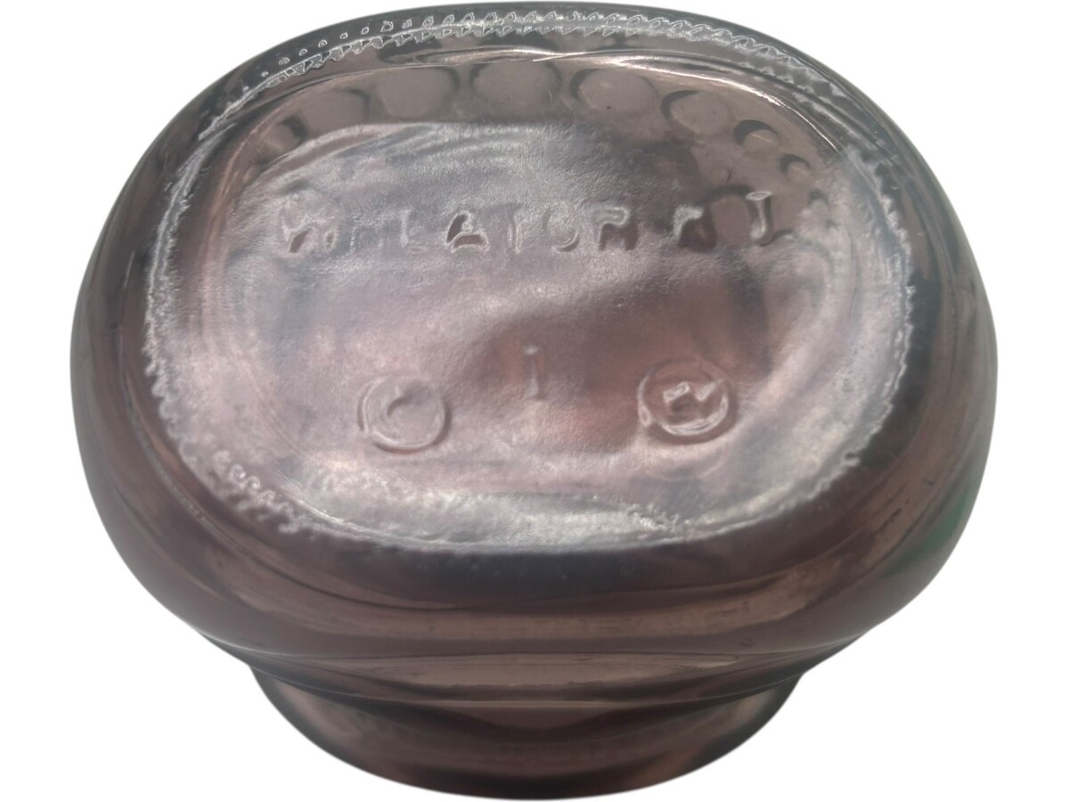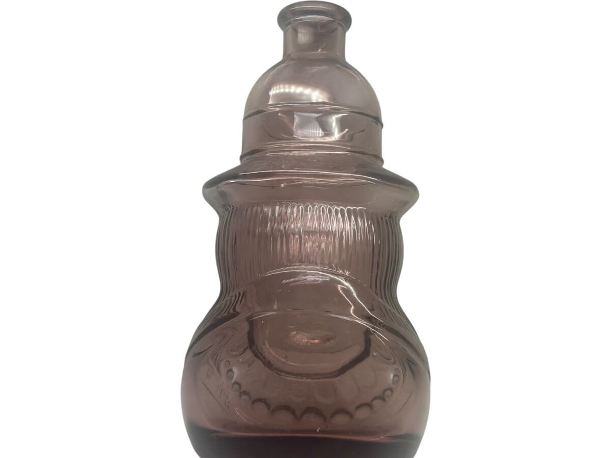 This vintage Wheaton NJ Pocahontas bottle from 1971 is a beautiful amethyst glass collectible. Its unique iridescent finish and figural design make it a stunning addition to any collection or shelf display.