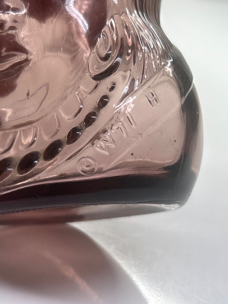 Vintage 1971 Wheaton NJ Pocahontas Amethyst Glass Figural Bottle Iridescent 5”