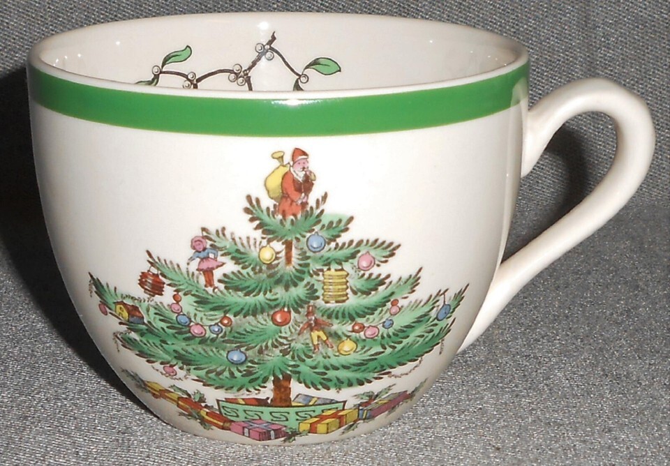 This is a Set of (4) Cups (No Saucers) that measure approx 2 1/2" tall from Spode in the Christmas Tree Pattern with the Green Trim. All four are in good pre-owned condition with no chips or damage.