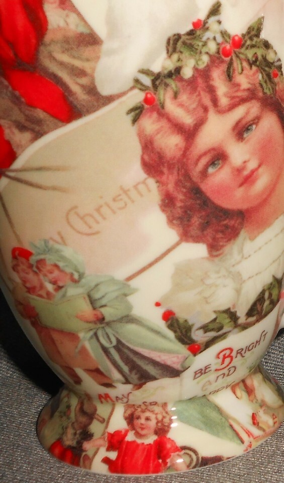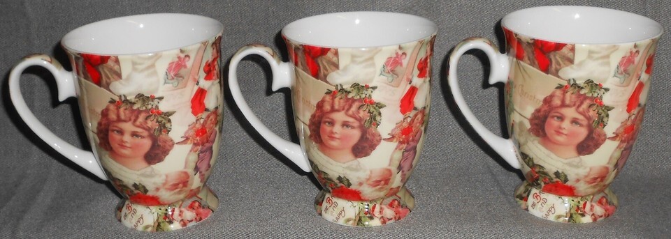 This is a Set of (3) Footed 12 oz Bone China Mug with Victorian Style Holiday/Christmas pattern from Stechcol - Gracie Bone China. They measure approx 4 1/8" tall and are all in good pre-owned condition with great graphics and color. ***Tiny Bright White Spots in Photos from Camera/Lighting***