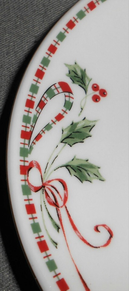 This is a Set of (4) 3 1/8" tall Cups and (4) 6" Saucers from Home Essentials in the Holiday - Christmas Tartan Ribbon Pattern. They are all in good pre-owned condition with no chips or cracks.