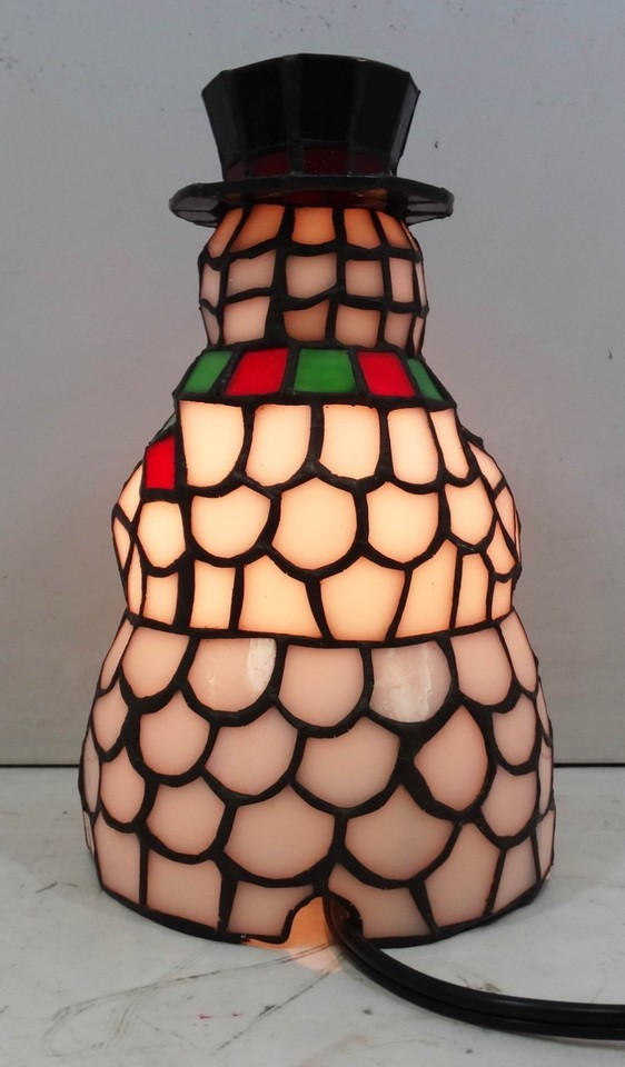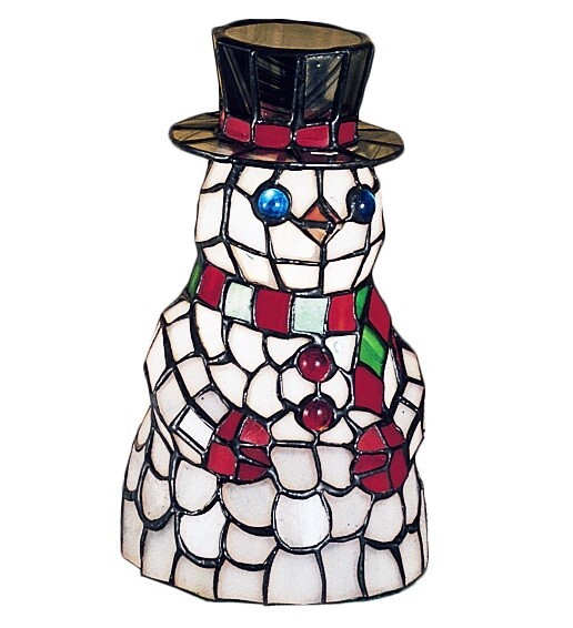 This cheerful Snowman accent lamp, crafted of Winter White with Berry Red and Pine Green stained art glass and colorful jewel accents will take the chill out of the coldest of days.